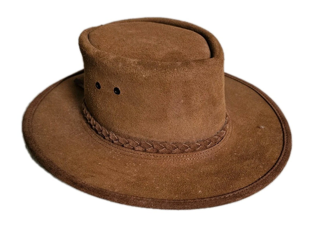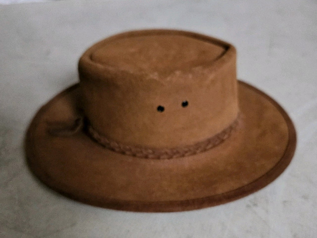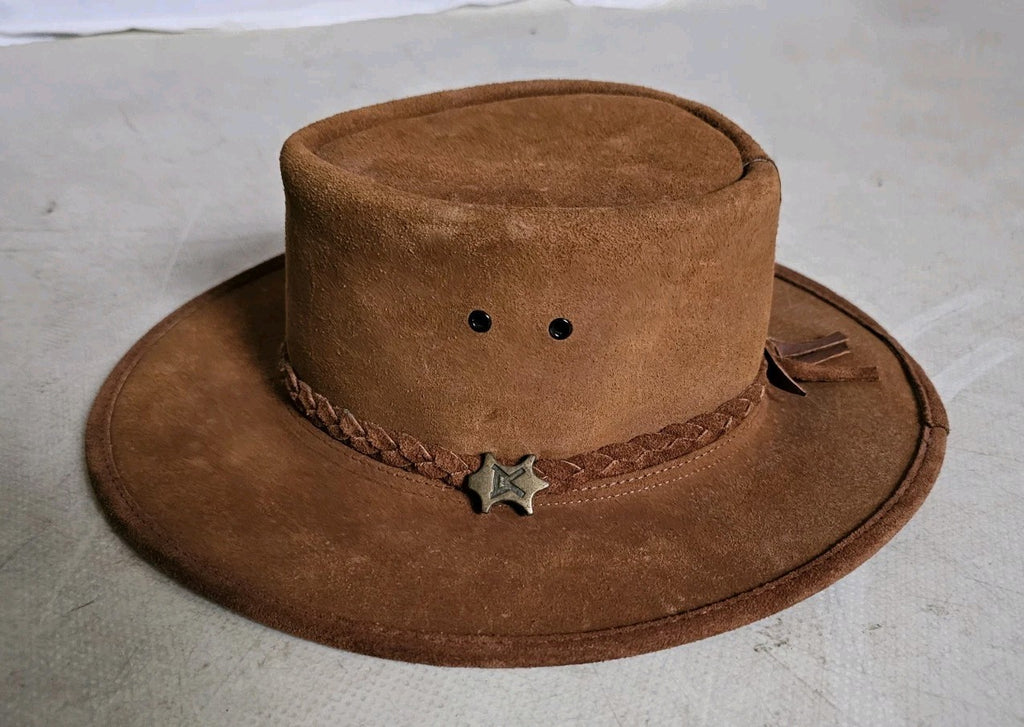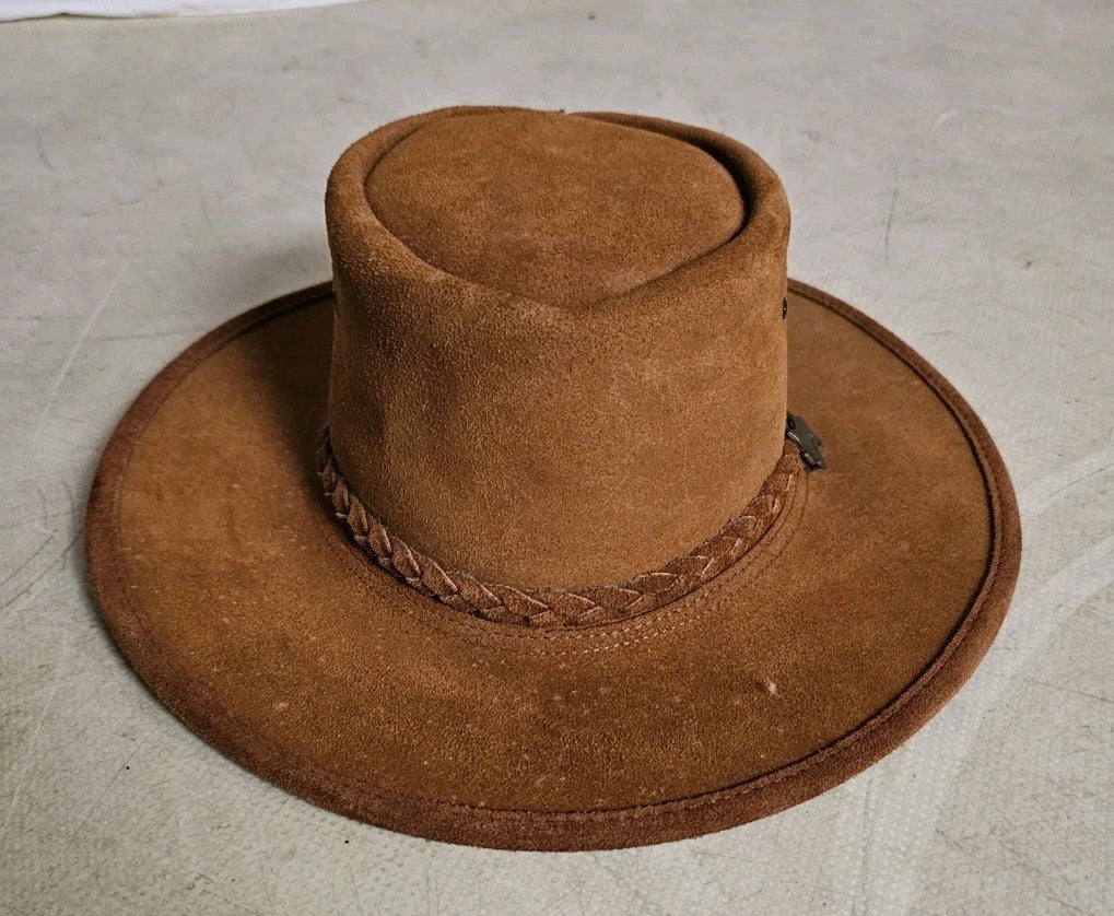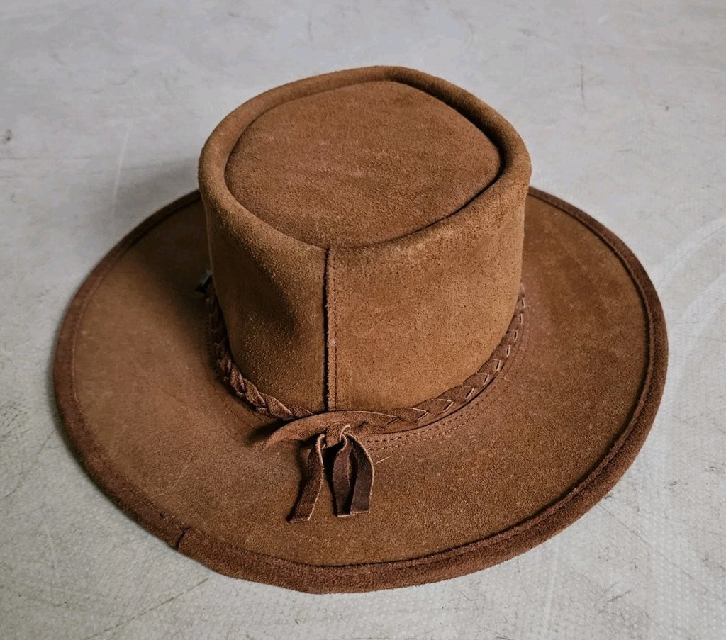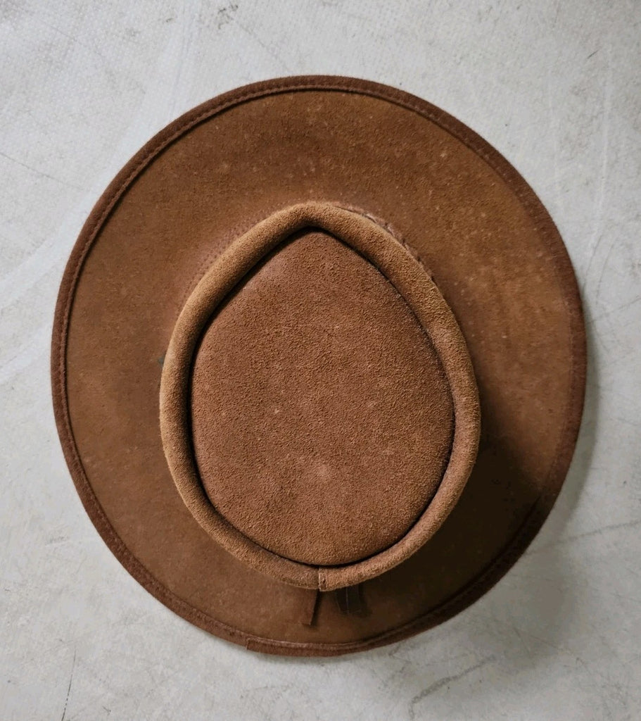 Australian Rancher Hat Size L Steer Hide Tan Suede Leather BC Hats Handmade