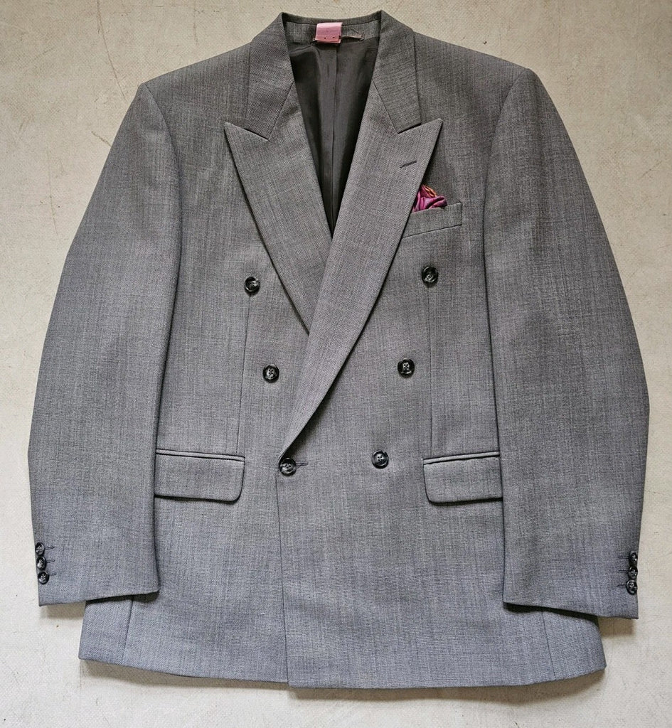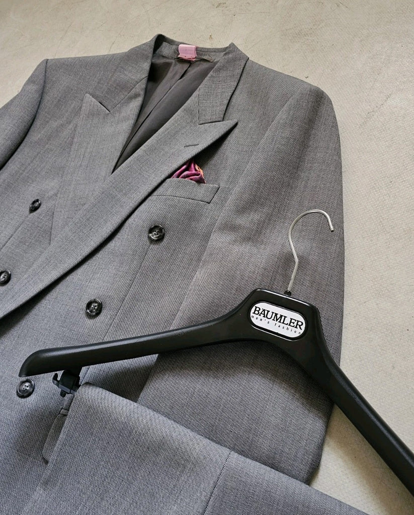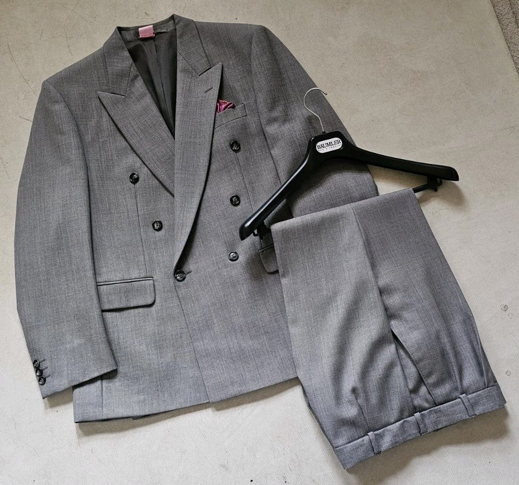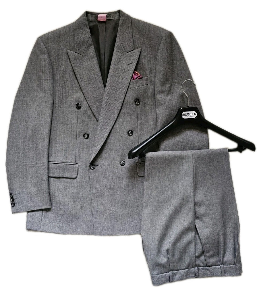 Baumler Suit Double Breasted Mens Jkt 42 R Trs W 36 L 30 Grey Wool Blend