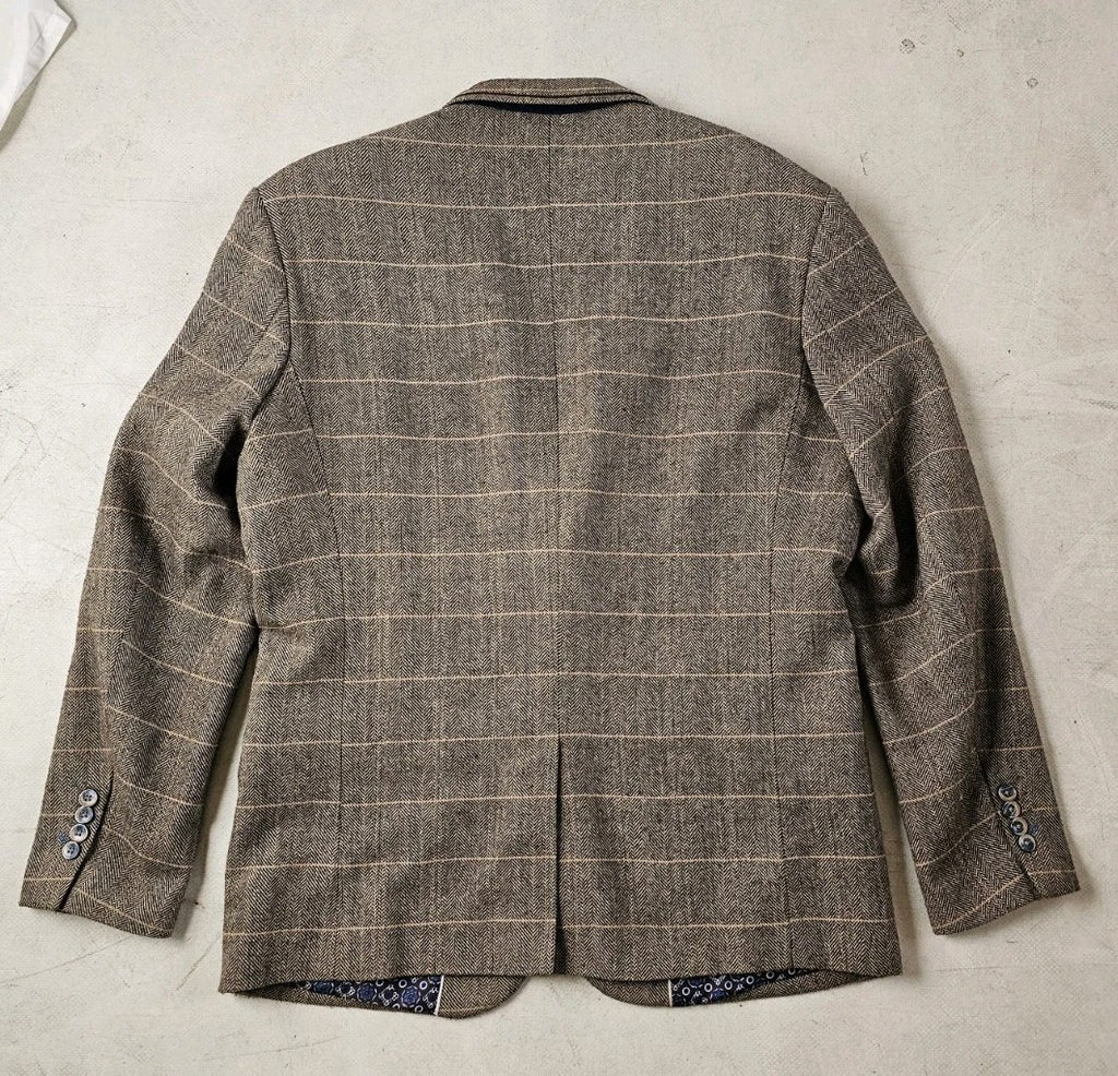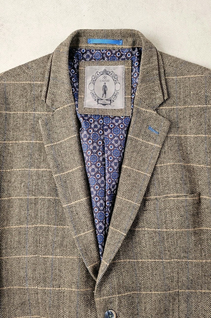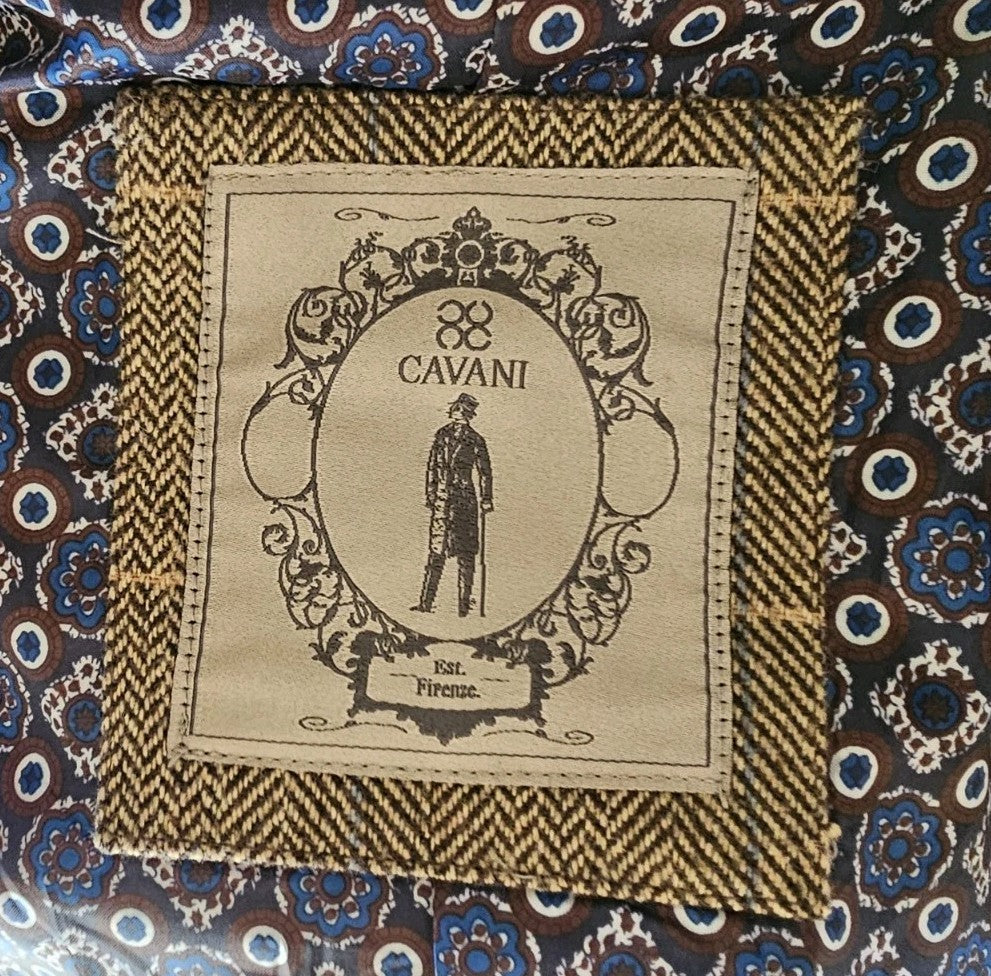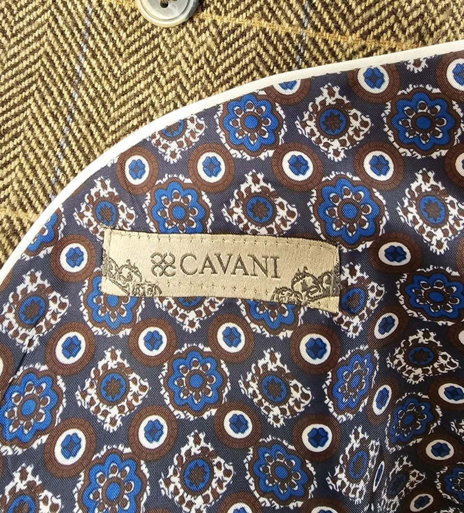 CAVANI Blazer Jacket Mens UK 44 R Wheat Wool Blend Herringbone Check