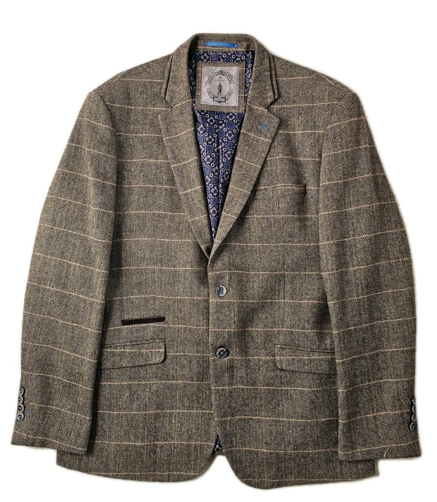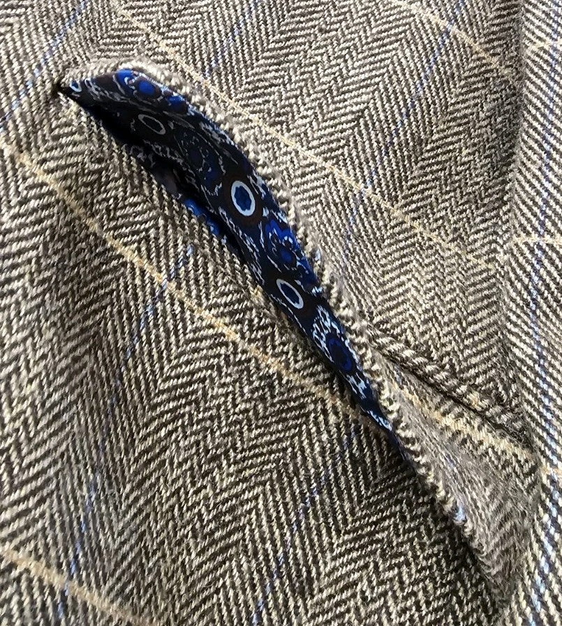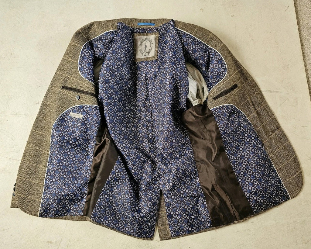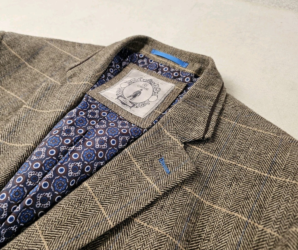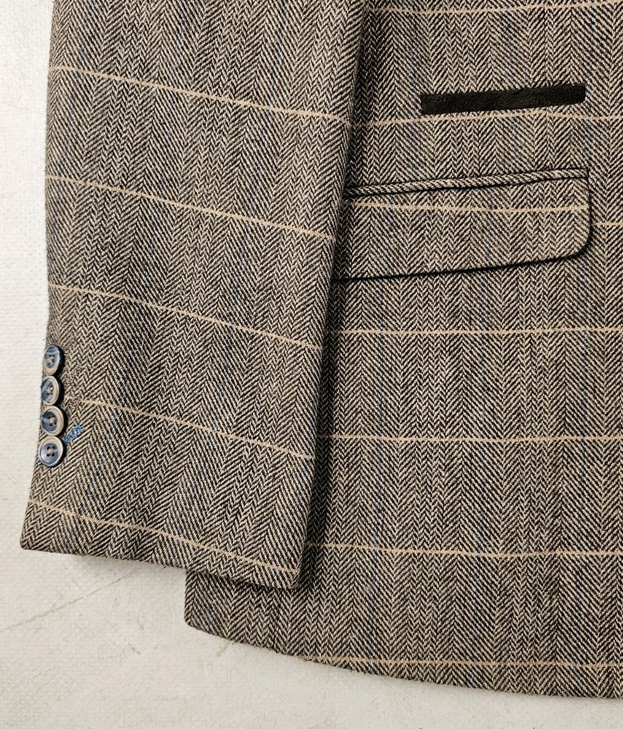 CAVANI Blazer Jacket Mens UK 44 R Wheat Wool Blend Herringbone Check