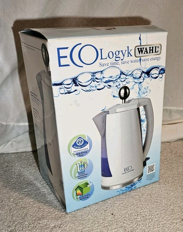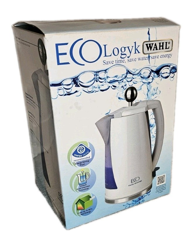 The Wahl Ecologyk kettle has been designed to save time and water. The dual chamber technology allows you to fill the kettle with 1.5 L of water and then decide how much to boil from a single cup 200 ml to the full 1.5. Simply push the water release knob to release as little or as much water as you want to boil, leaving the remaining water in the water chamber until required. The Wahl Ecolgyc has a 2200 W concealed element an illuminated water guage for accurate measuring and 360 degree base with cord storage. . Since 1919 Wahl have been a market leader and manufacturer of small electrical appliances. Today Wahl are proud to carry forward the tradition of innovation, quality and superior customer service that was started by their founder, Leo J Wahl 90 years ago. Always evolving Wahl have remained focused on developing essential appliances for the modern home. A brand trusted the world over, Wahl remain a family run business with products sold in approximately 165 countries worldwide