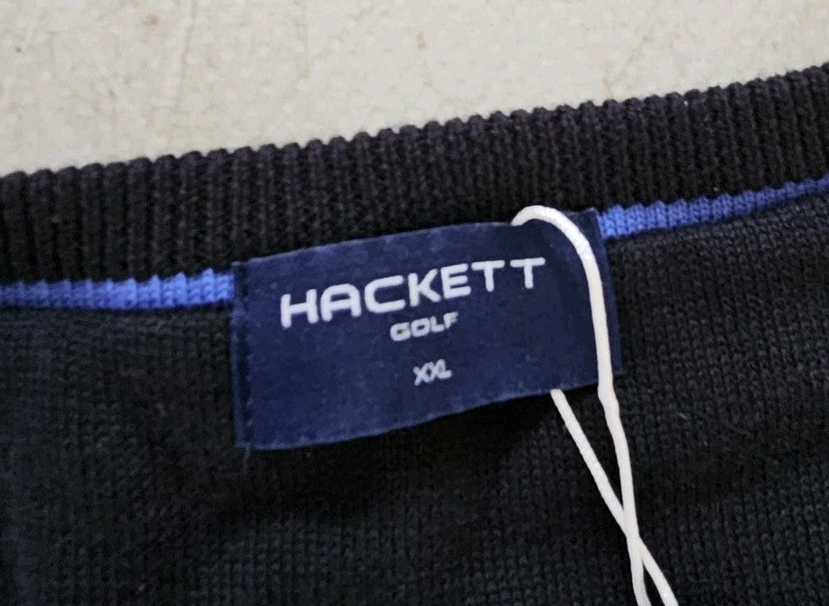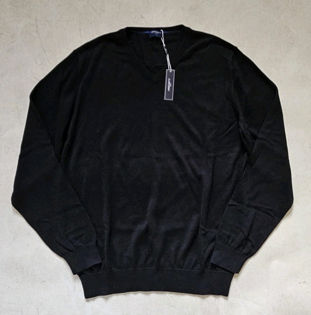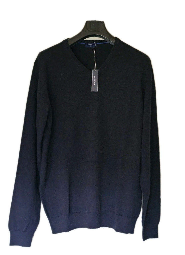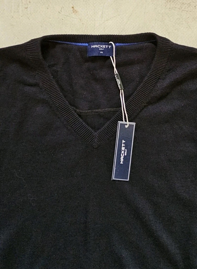 HACKETT Jumper Mens XXL Black Pure Cotton V Neck