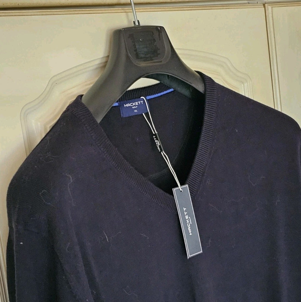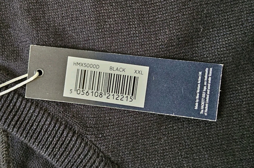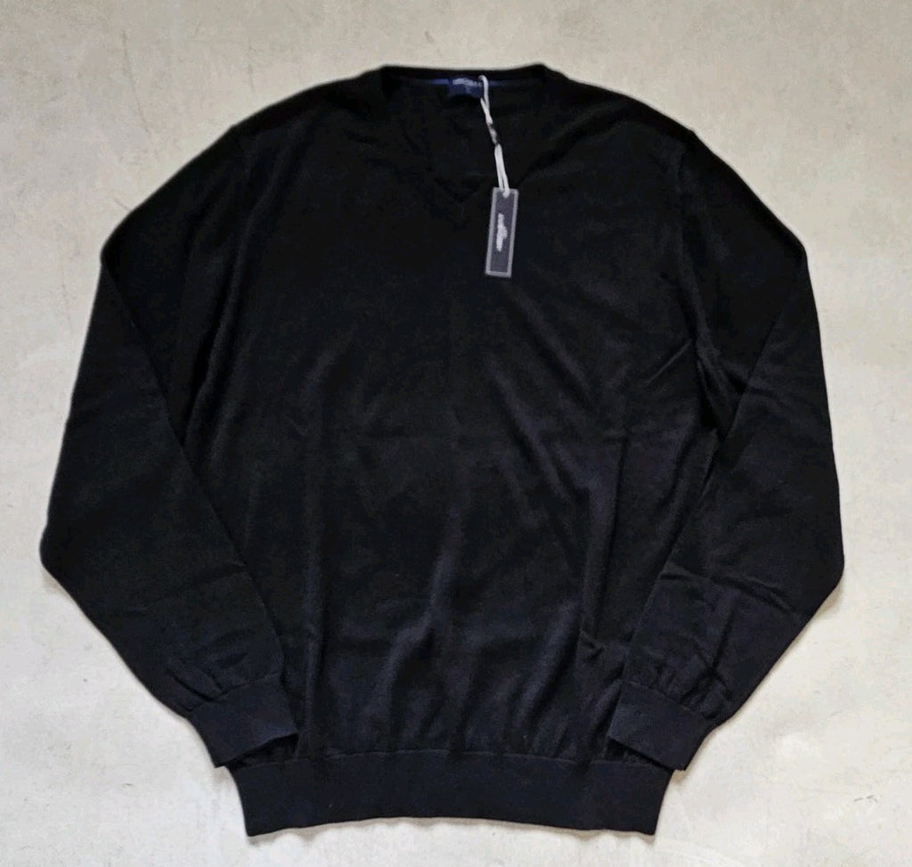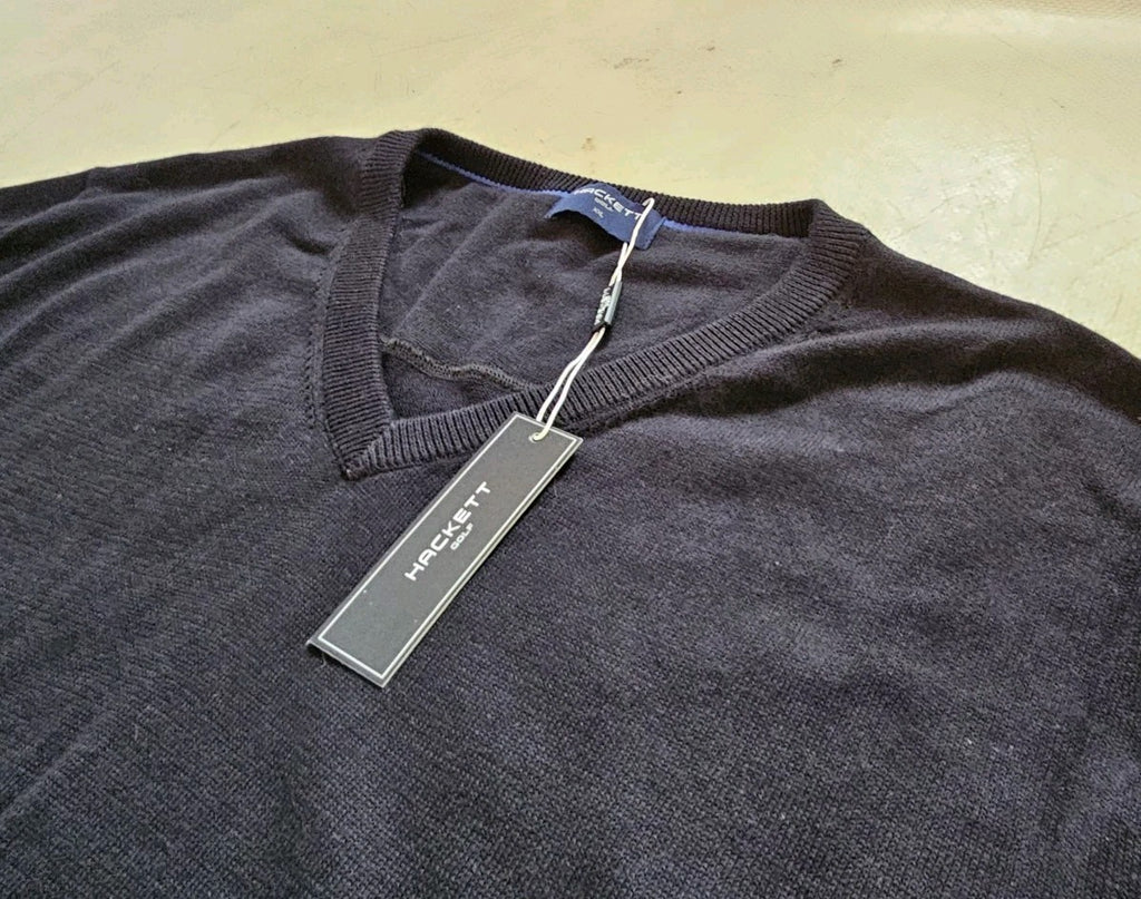 HACKETT Jumper Mens XXL Black Pure Cotton V Neck