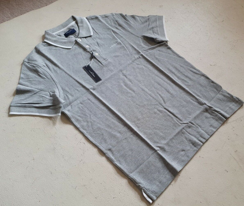 HACKETT Polo Shirt Mens M Grey White Trim Golf New With Tags