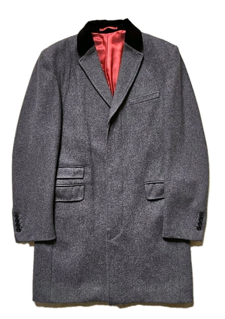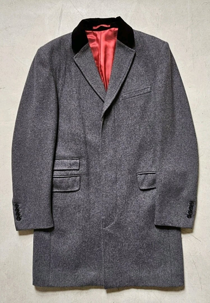 HOLLAND ESQUIRE Epsom Coat Overcoat Grey Wool Blend Mens L Rrp £585