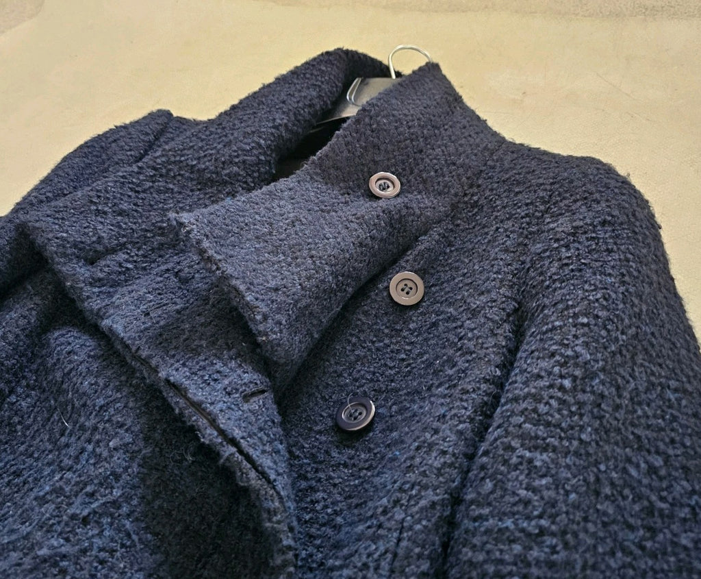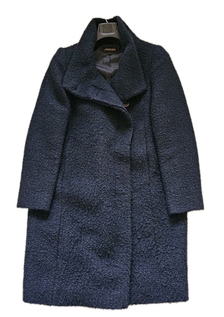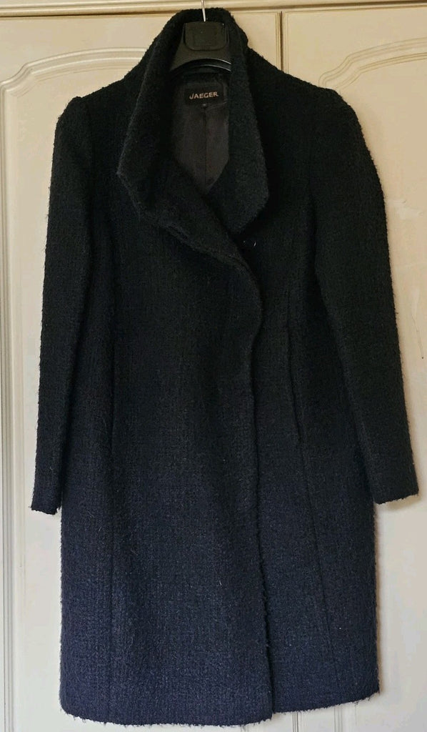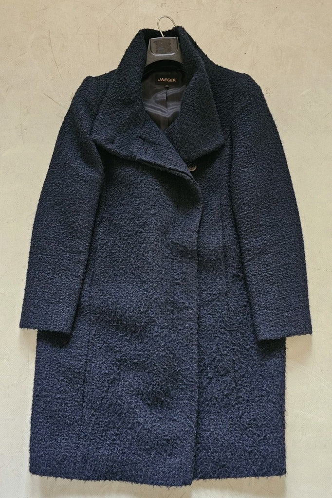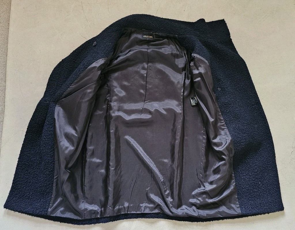 Jaeger Coat Jacket Womens UK 12 Navy Blue Boucle Wool Blend Vintage