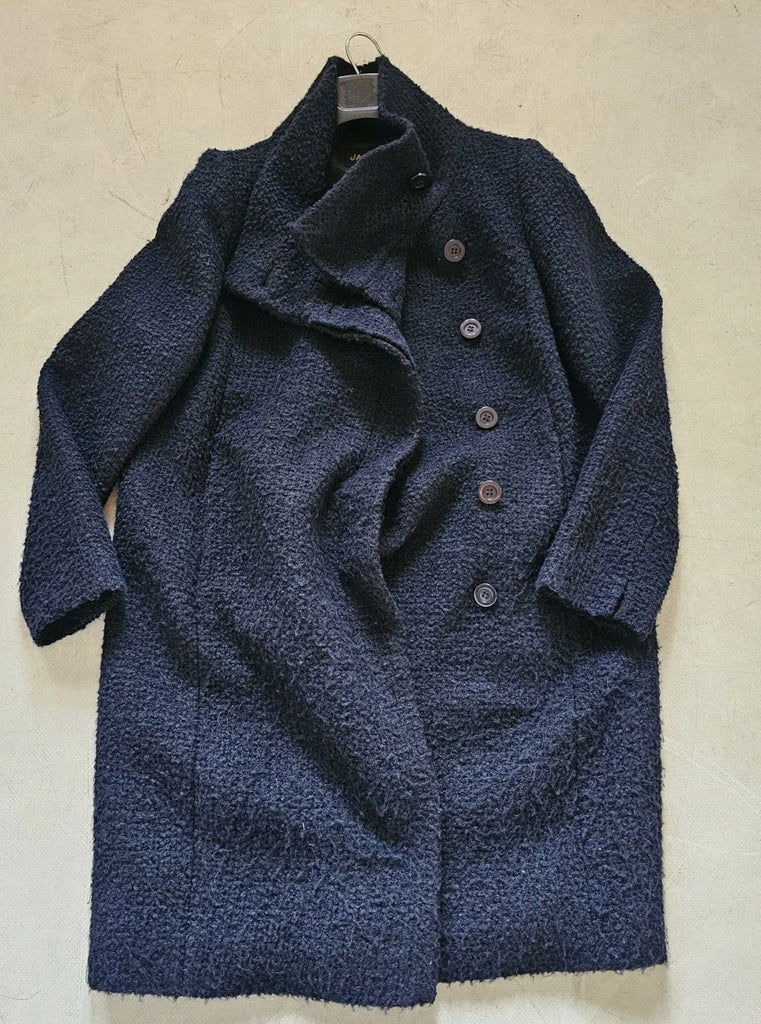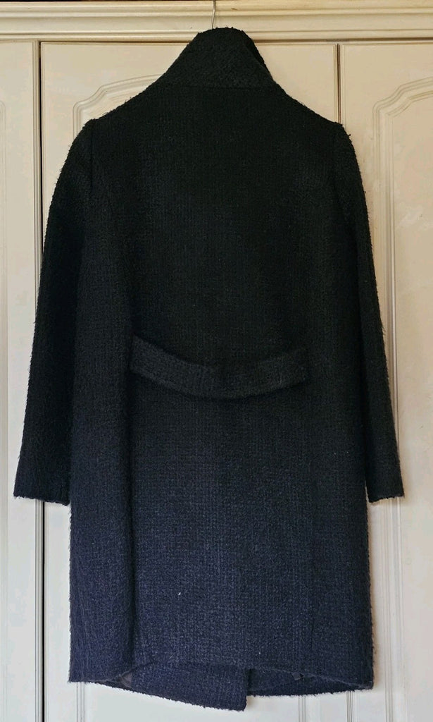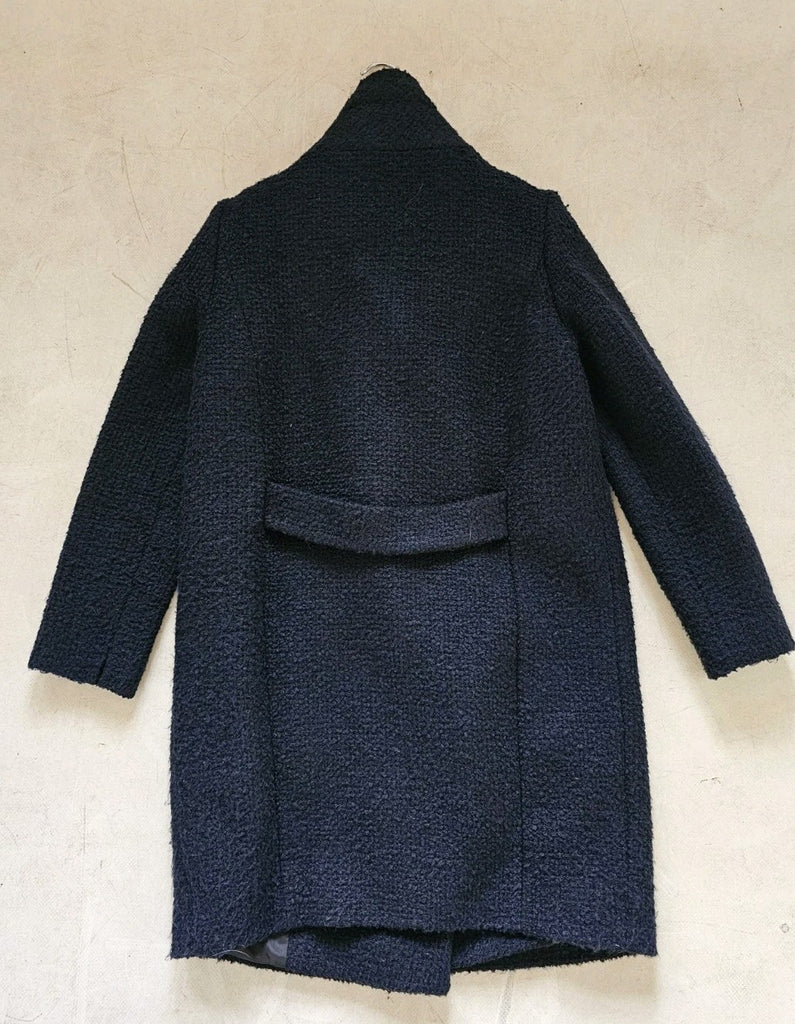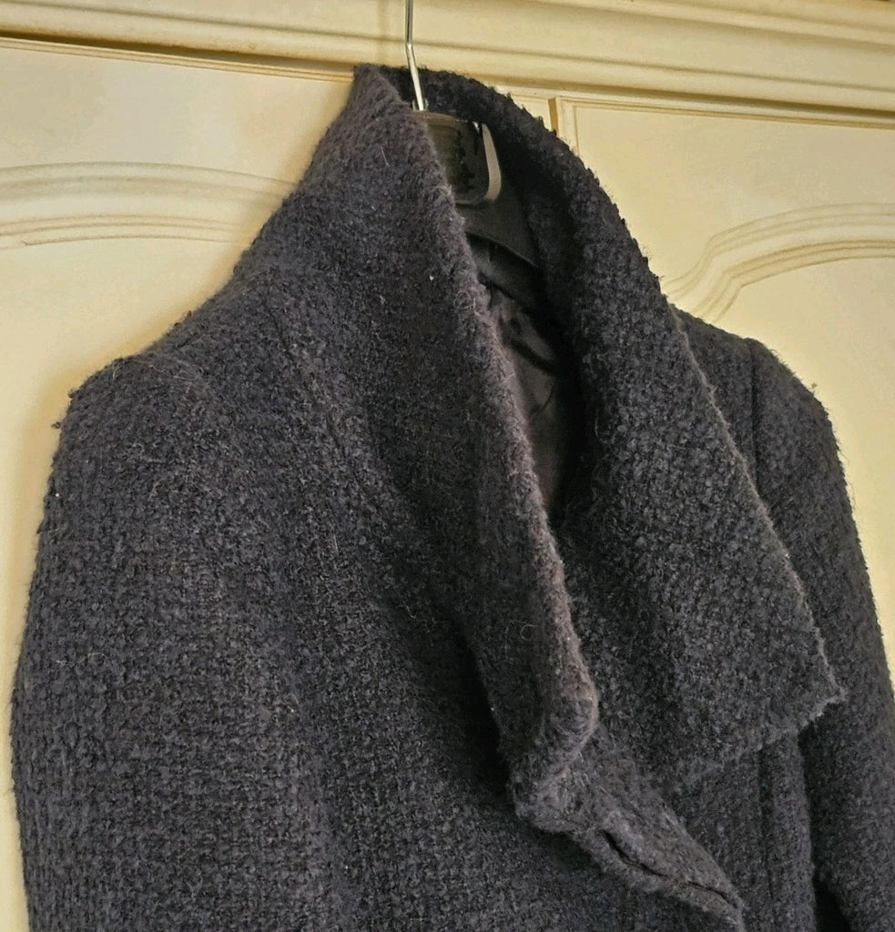 Jaeger Coat Jacket Womens UK 12 Navy Blue Boucle Wool Blend Vintage
