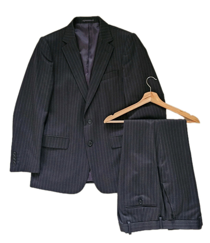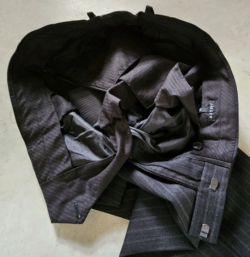 JAEGER Suit Mens Jkt 40 S Trs 34 S Anthracite Grey Pinstripe Wool New