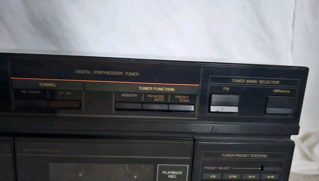 Features: Double Cassette Deck (Play/Record), Radio Tuner