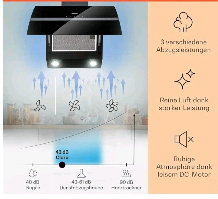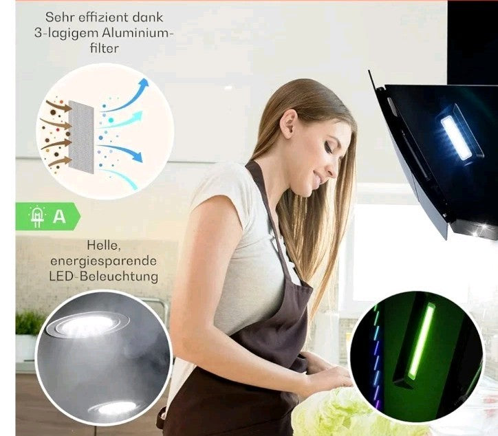 ▪︎ ATTRACTIVE AND CLEVER DESIGN: With its elegant design, this extractor hood fits into any kitchen and looks elegant with its discreet design. In addition, the high-quality LED lighting illuminates your cooking skills without glare.