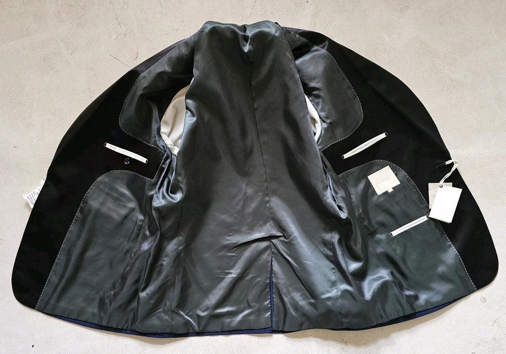 THE SUIT LABEL STATES IT'S A 44 REGULAR FIT BUT AS YOU PROBABLY KNOW THE SIZING VARIES MASSIVELY DEPENDING ON THE CUT AND STYLE SO I ALWAYS MEASURE SUITS UP MYSELF TO GIVE OUR CLIENTS EXACT AND TRUE SIZING. PLEASE COMPARE THE MEASUREMENTS BELOW WITH YOUR OWN SUIT TO ENSURE A GOOD FIT. WE ACCEPT ALL RETURNS BUT IT'S A LOT EASIER TO GET IT RIGHT FIRST TIME!