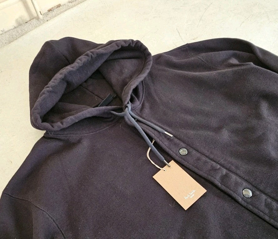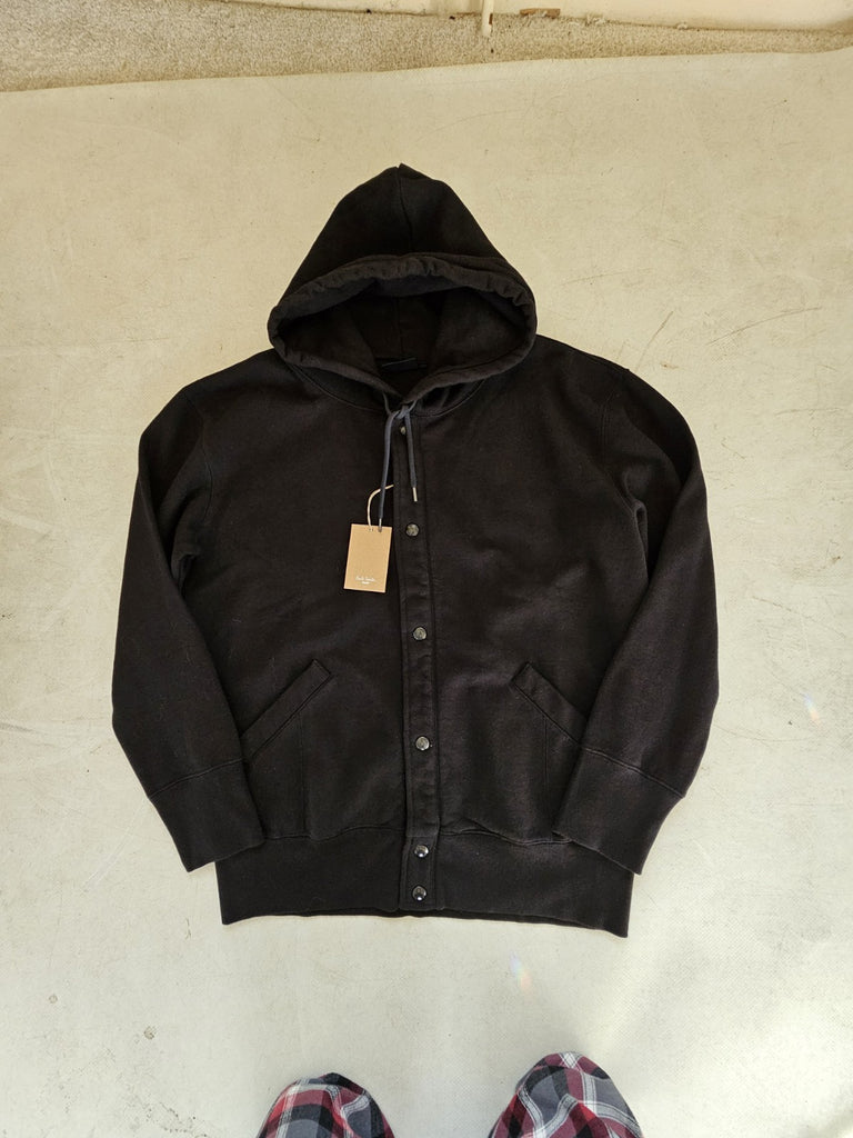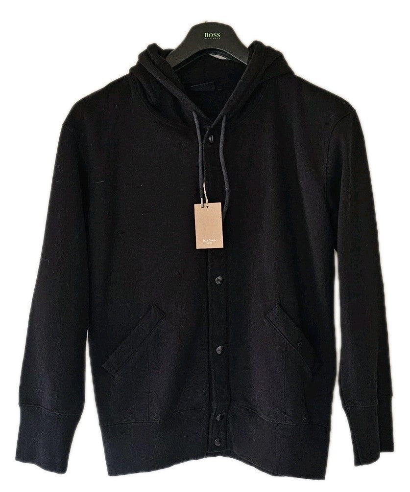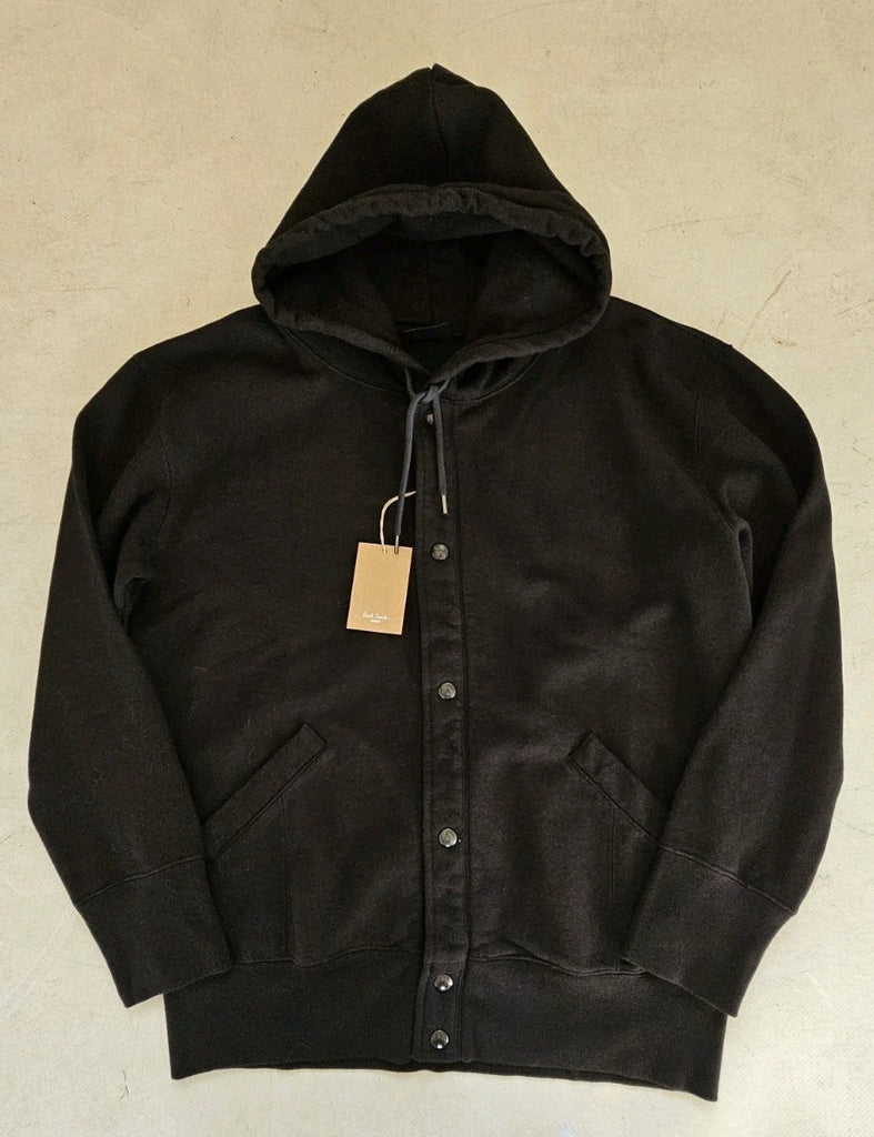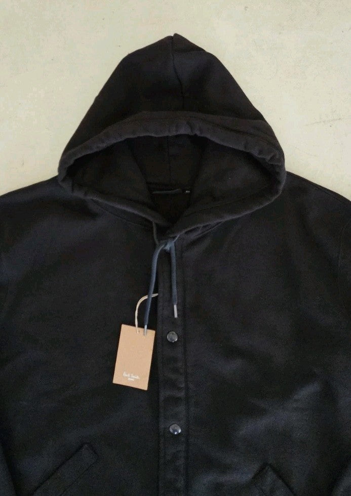 PAUL SMITH Bomber Jacket Coat Mens M Black Thick Jersey Hooded Press Studs