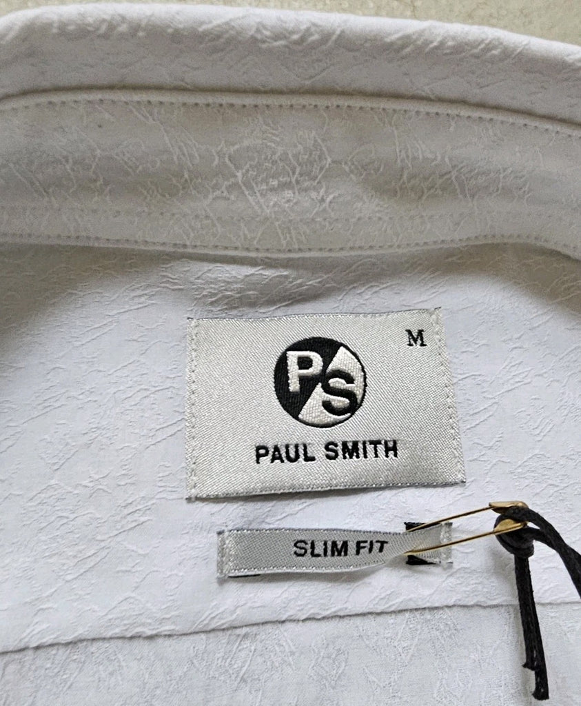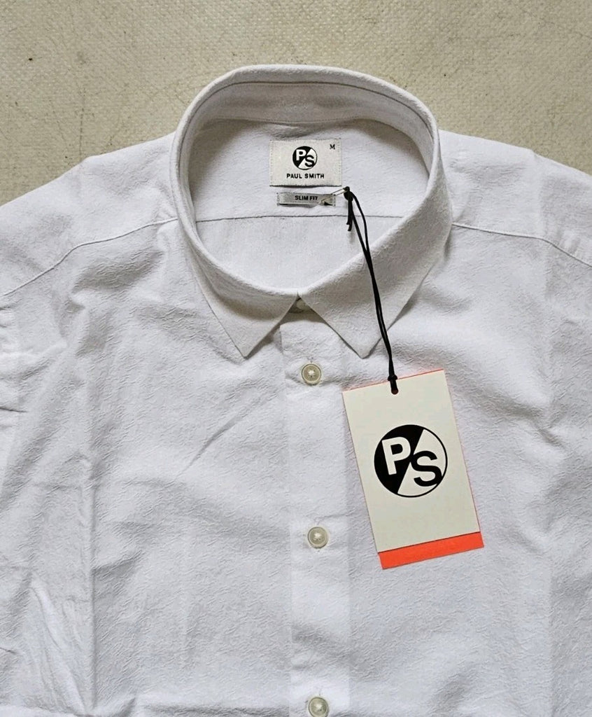 PAUL SMITH Dress Shirt Mens M Slim Fit White Textured Weave Organic Cotton