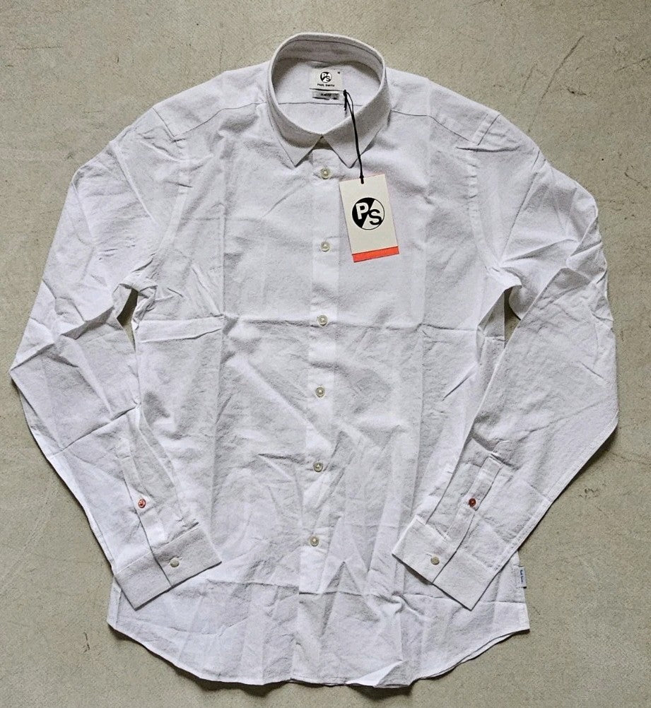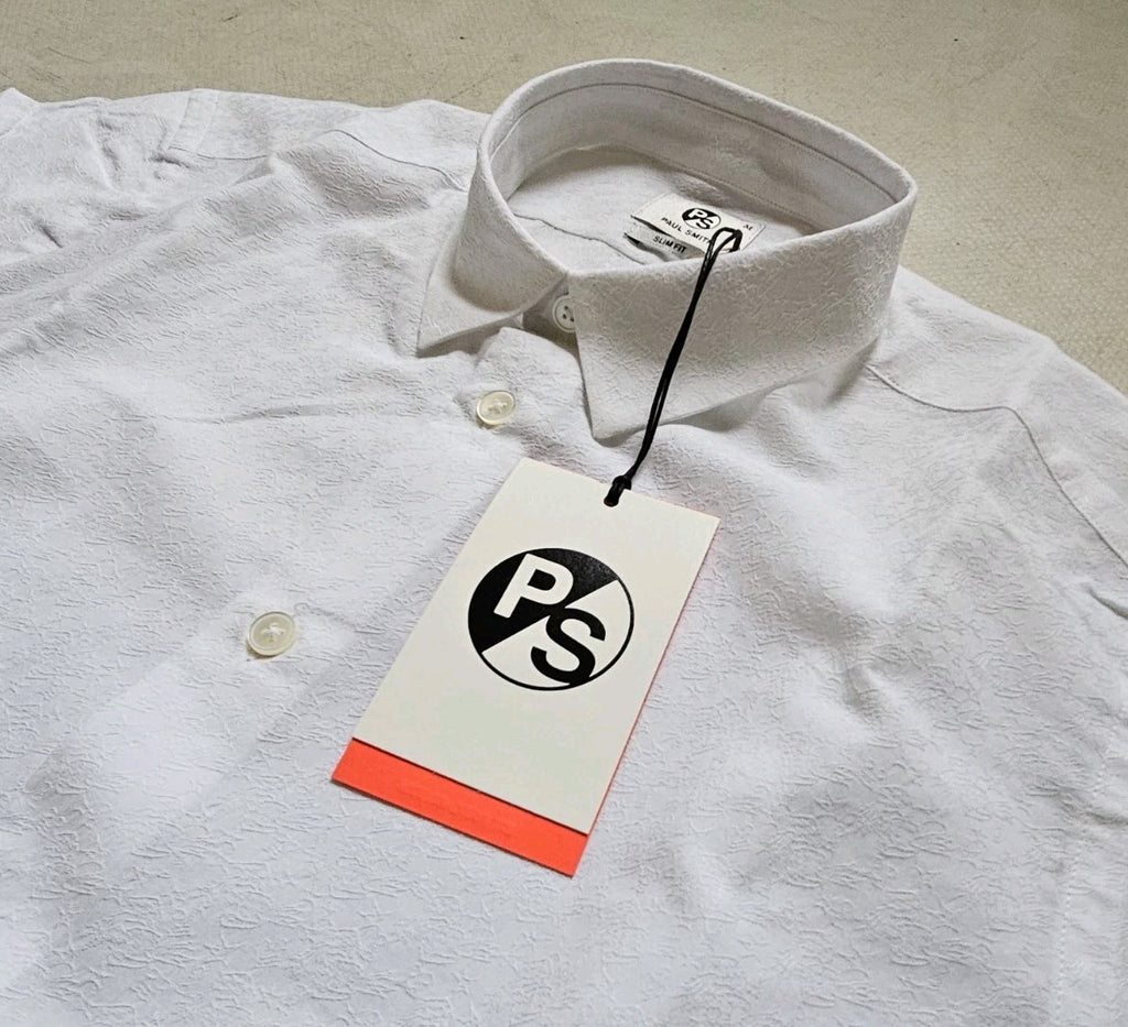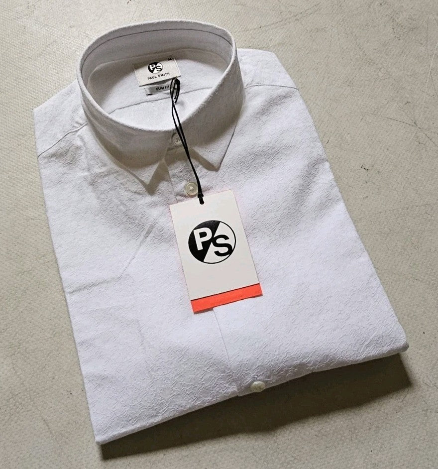 GREAT OPPORTUNITY TO OWN A PAUL SMITH DRESS SHIRT AT A 70% DISCOUNT ON THE NORMAL PRICE. BRAND NEW WITH ALL THE TAGS, FEATURING ALL THE APPROPRIATE PS EMBELLISHMENTS (SALES TAGS, TABS, EMBOSSED BUTTONS, BADGE ETC) WITH ALL THE USUAL PS DESIGNER QUIRKS - 100% AUTHENTIC. THE RRP IS A FRANKLY RIDICULOUS £185 SO GRAB A BARGAIN!