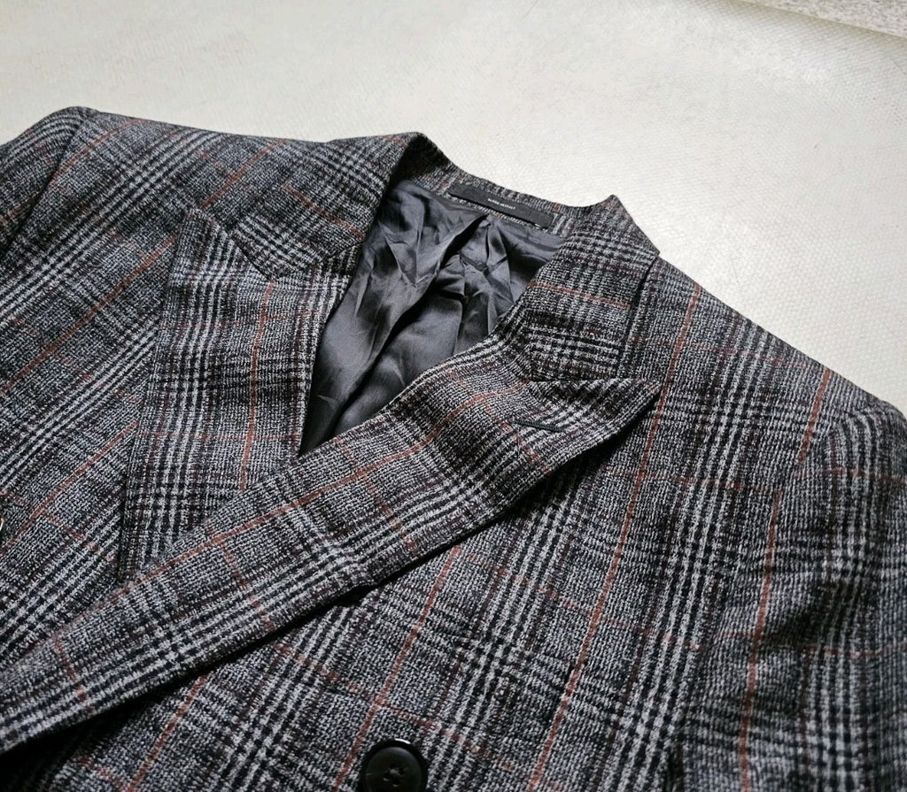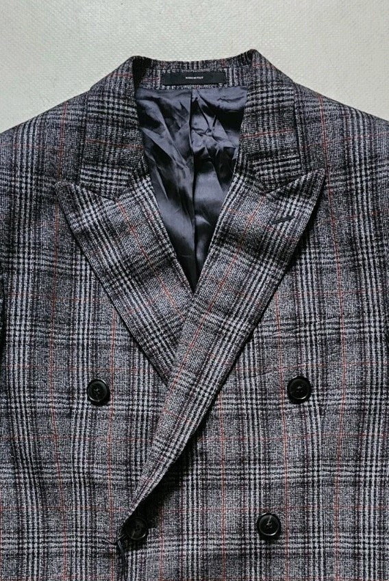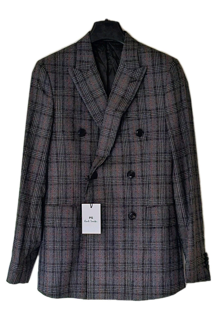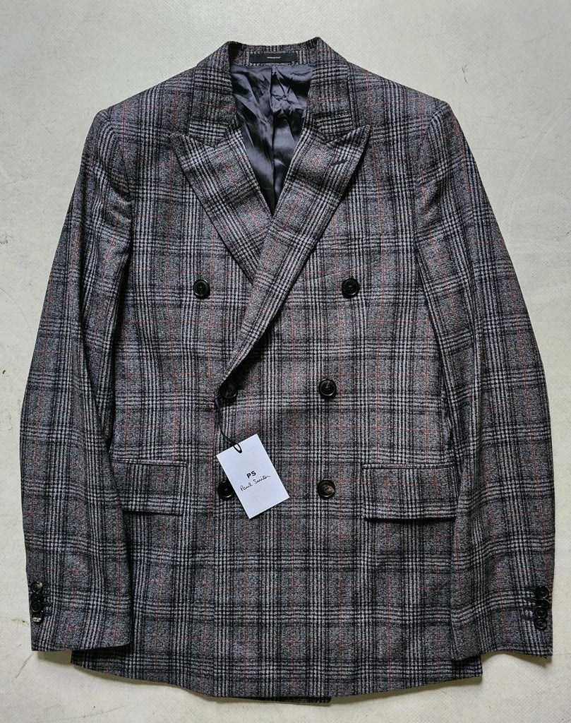 PAUL SMITH Jacket Blazer Mens 38 Long Double Breasted Grey Check Wool Italy £385