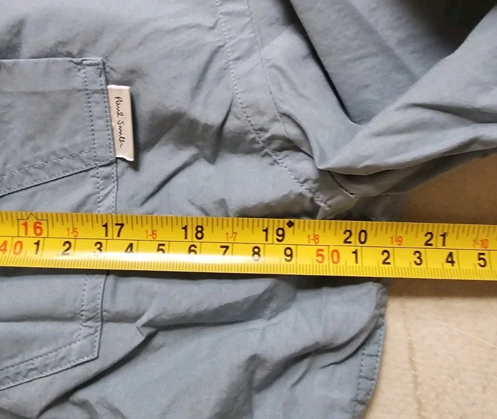 IF YOU'RE FAMILIAR WITH PAUL SMITH YOU'LL ALREADY BE AWARE THAT THEIR SIZING IS SOMEWHAT RANDOM DEPENDING ON THE CUT/STYLE OF THE PIECE. THUS, I MEASURE EACH ITEM INDIVIDUALLY TO PROVIDE AN ACCURATE SIZE AND AVOID ANY CONFUSION! PLEASE SEE PICS WHICH FORM PART OF THE DESCRIPTION. AS YOU CAN SEE THE PIT TO PIT MEASUREMENT IS ACTUALLY 20 INCHES ACROSS. PLEASE ALSO BE AWARE THAT THIS IS A TAILORED FIT SHIRT. IT'S WORTH COMPARING WITH ONE OF YOUR OWN SHIRTS TO ENSURE A PERFECT FIT - WE ACCEPT ALL RETURNS BUT IT'S A LOT EASIER TO GET IT RIGHT FIRST TIME!
