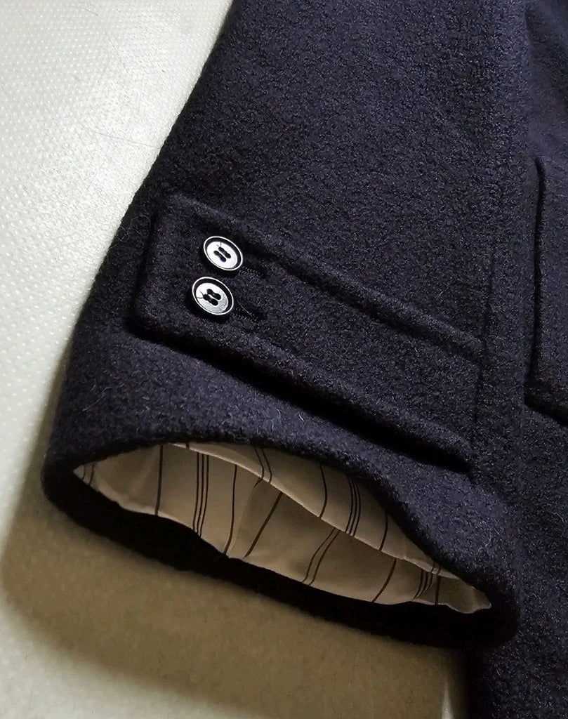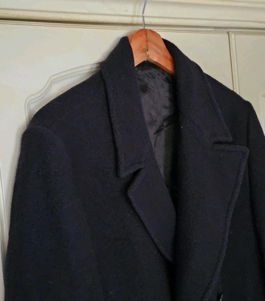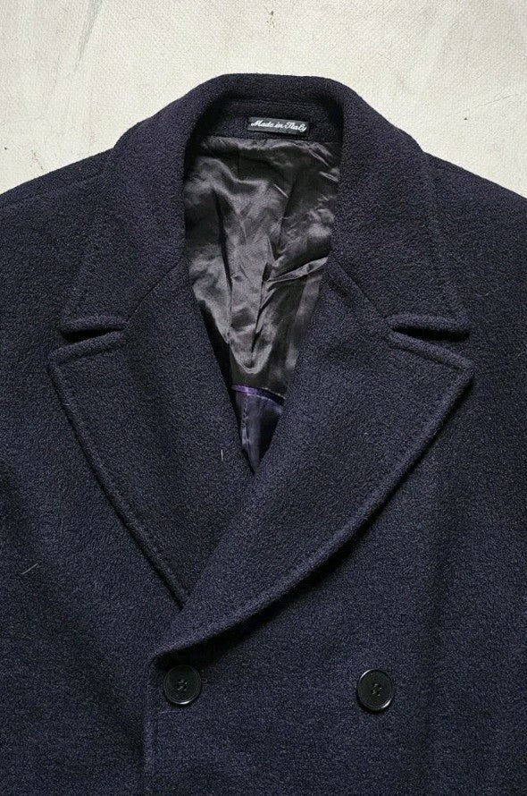 THIS CLASSIC, DOUBLE BREASTED PEA COAT COMES IN NAVY BLUE PURE WOOL AND WAS HANDMADE IN ITALY TO PAUL SMITH'S. EXACTING STANDARDS. IT'S A REALLY LOVELY PIECE!