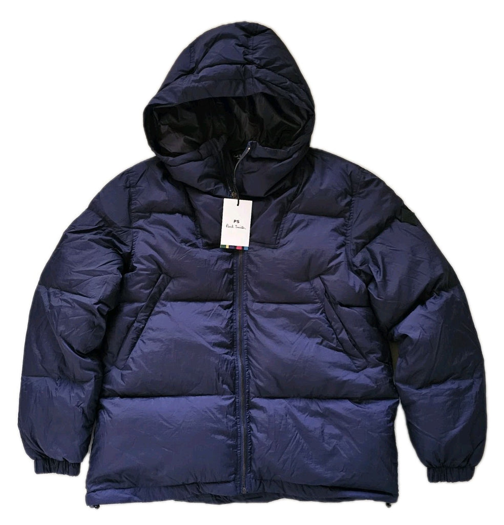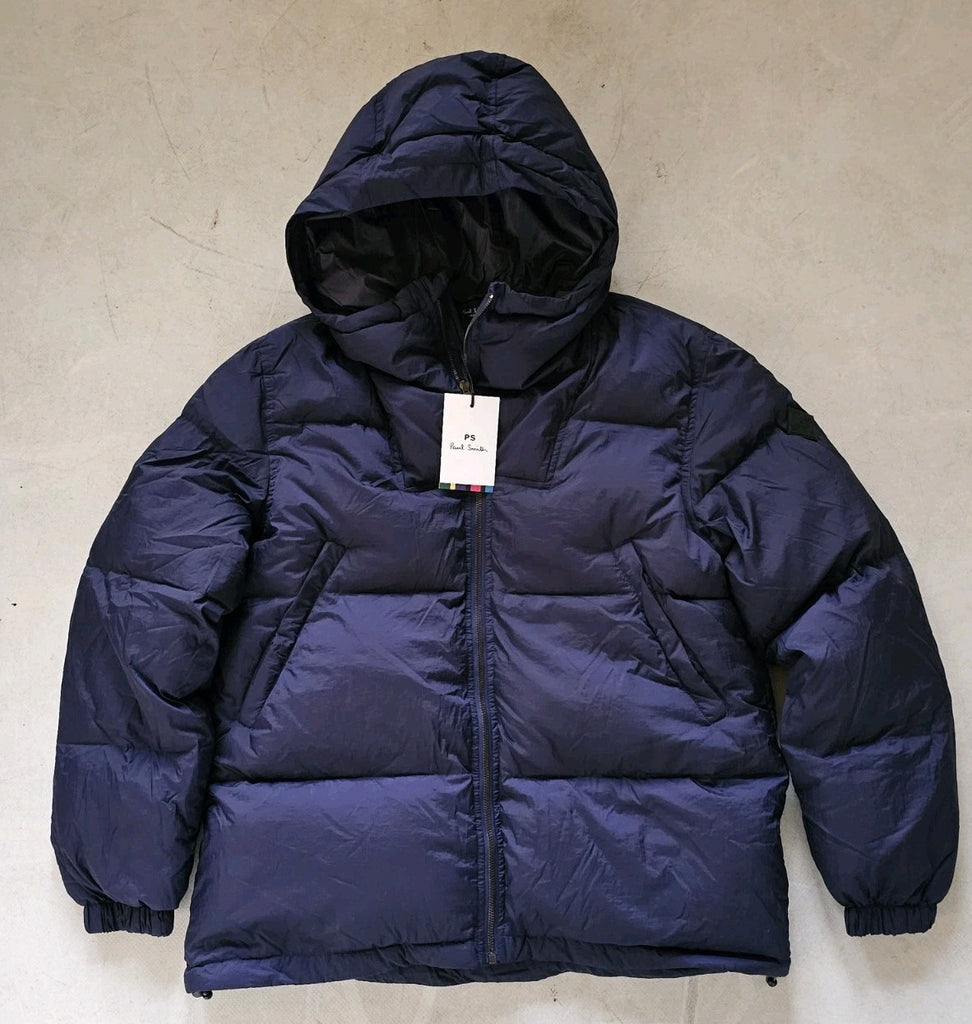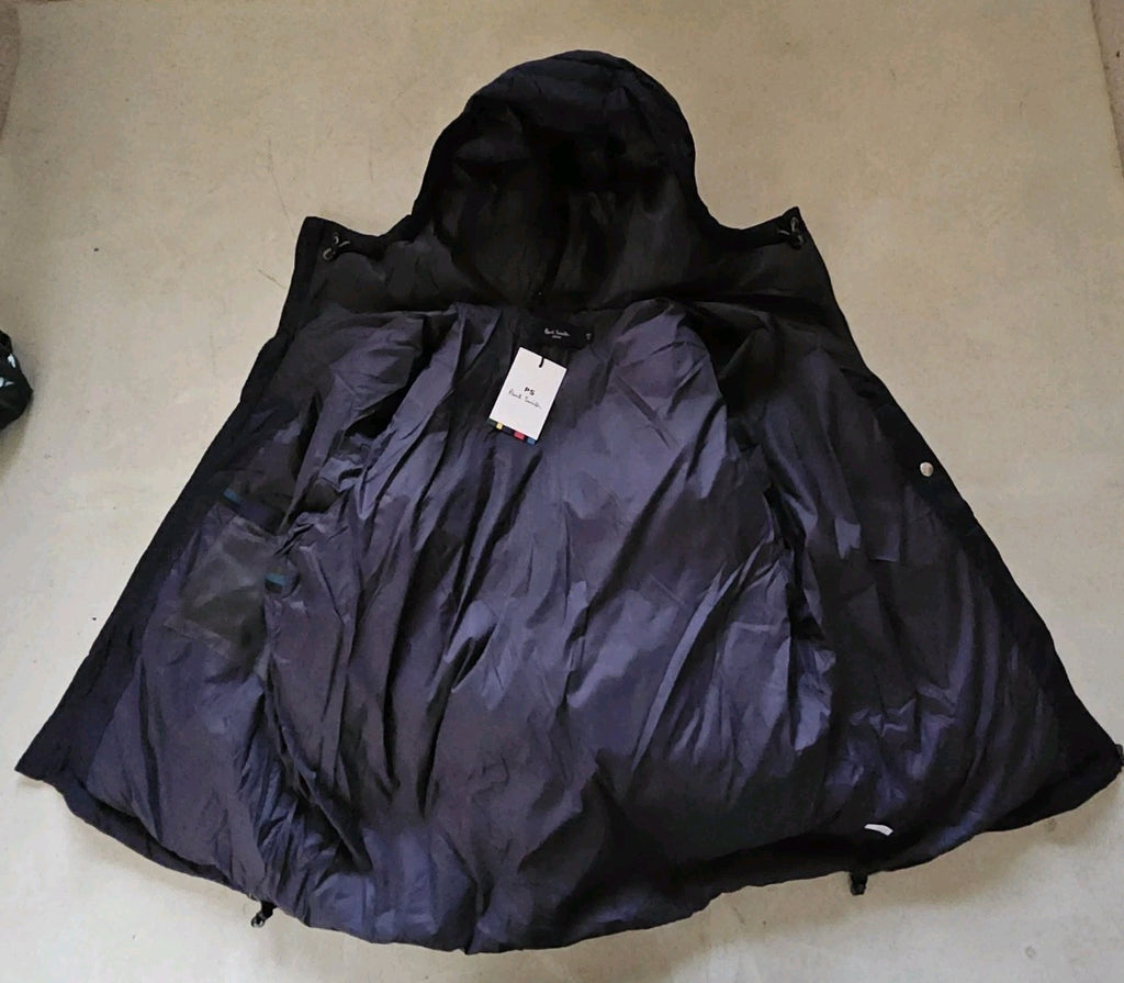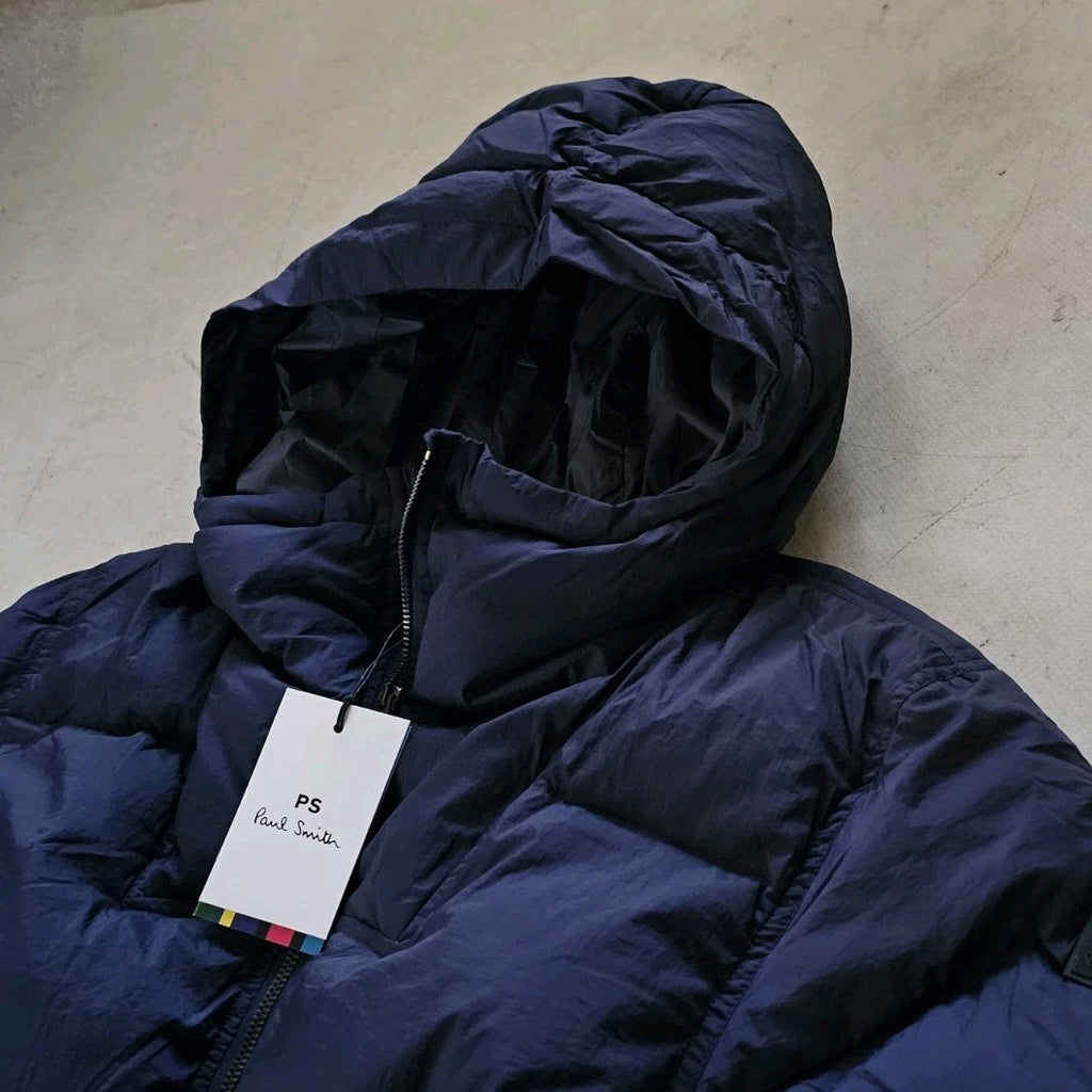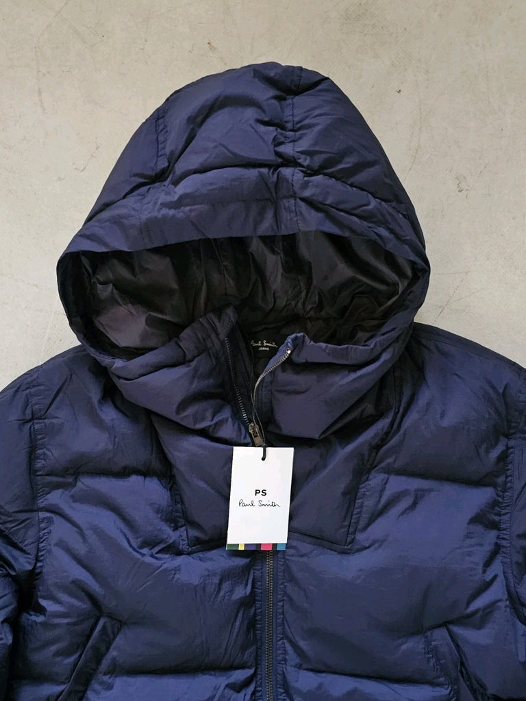 PAUL SMITH Puffer Jacket Coat Mens M Navy Blue Down Filled Hooded Quilted
