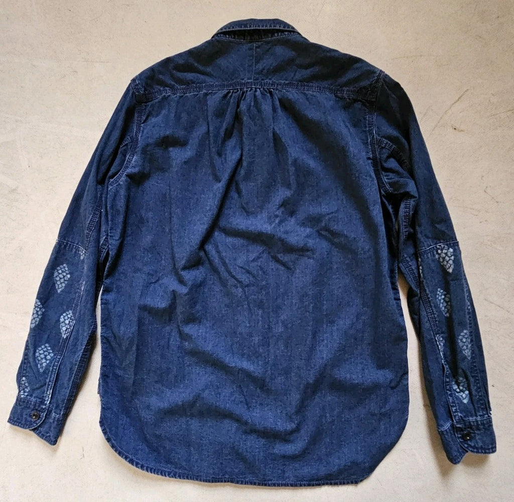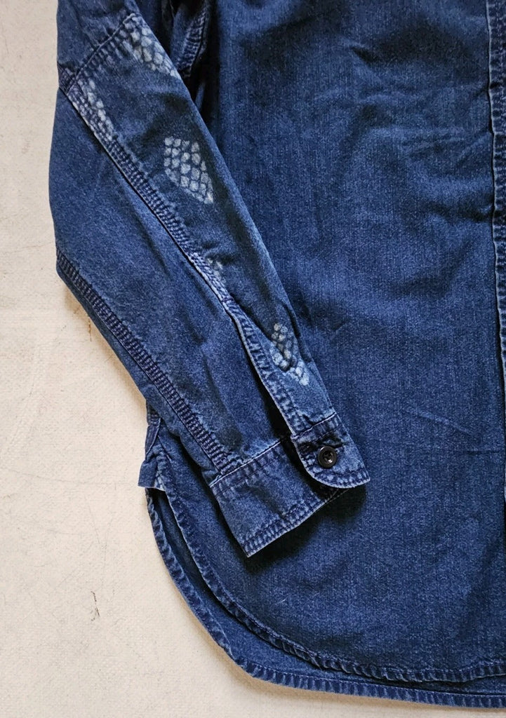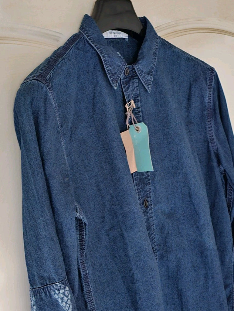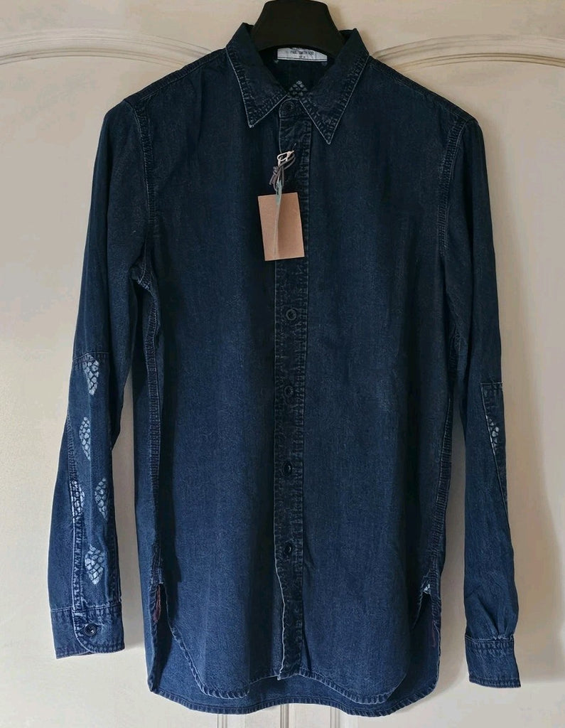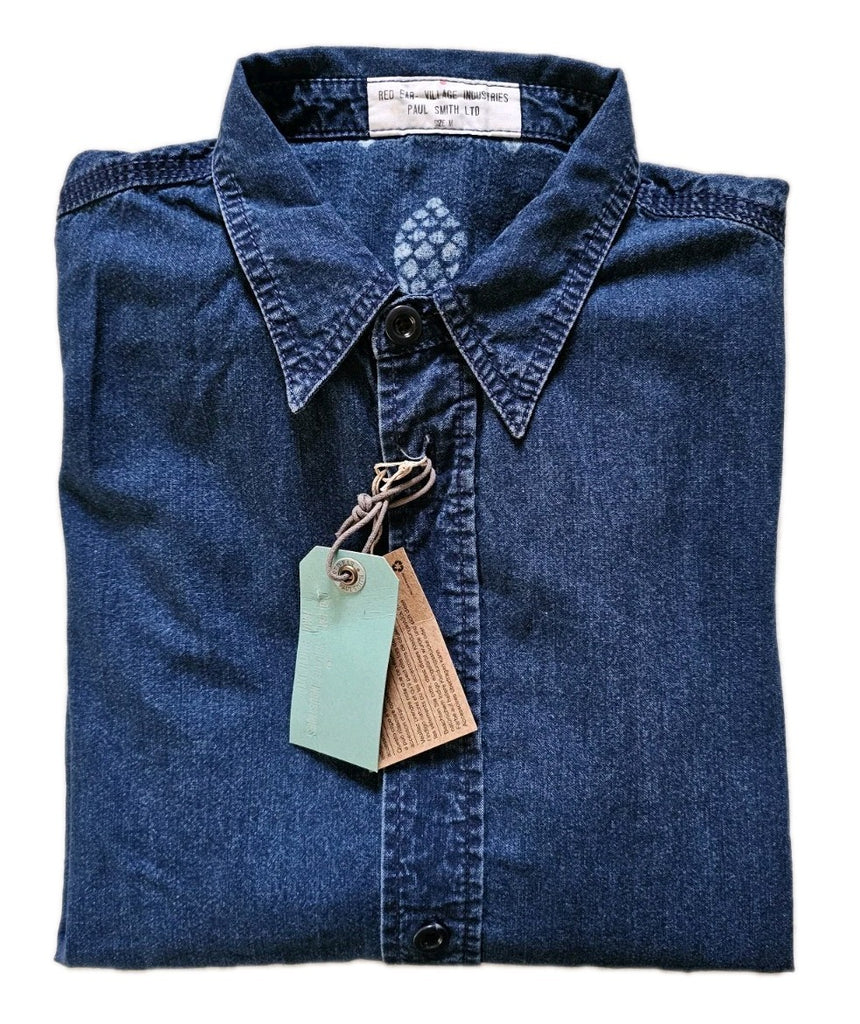 IF YOU'RE FAMILIAR WITH PAUL SMITH YOU'LL ALREADY BE AWARE THAT THEIR SIZING IS SOMEWHAT RANDOM DEPENDING ON THE CUT/STYLE OF THE PIECE. THUS, I MEASURE EACH ITEM INDIVIDUALLY TO PROVIDE AN ACCURATE SIZE AND AVOID ANY CONFUSION! PLEASE SEE PICS WHICH FORM PART OF THE DESCRIPTION. AS YOU CAN SEE THE PIT TO PIT MEASUREMENT IS ACTUALLY 22.5 INCHES ACROSS. PLEASE ALSO BE AWARE THAT THIS IS A CASUAL/LOOSE FIT SHIRT - MUCH LOOSER THAN MOST RED EAR WHICH IS TAILORED FOR THE ASIAN FRAME (MUCH SMALLER THAN EUROPEAN). CAN BE WORN AS A NORMAL SHIRT OR AS AN OVERSHIRT (THE DENIM FABRIC IS QUITE THICK)