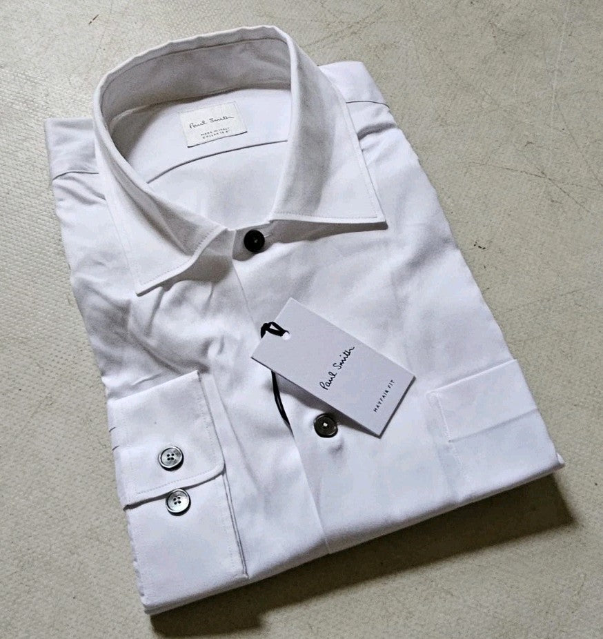 GREAT OPPORTUNITY TO OWN A PAUL SMITH SHIRT AT A 70% DISCOUNT ON THE NORMAL PRICE. BRAND NEW WITH ALL THE TAGS, FEATURING ALL THE APPROPRIATE PS EMBELLISHMENTS (SALES TAGS, TABS, EMBOSSED BUTTONS, BADGE ETC) WITH ALL THE USUAL PS DESIGNER QUIRKS - 100% AUTHENTIC. THE RRP IS A FRANKLY RIDICULOUS £165 SO GRAB A BARGAIN!