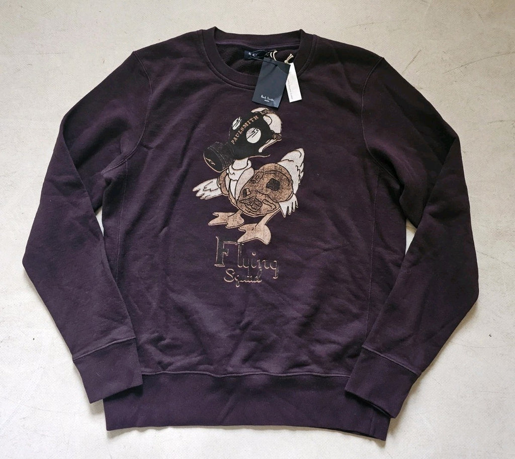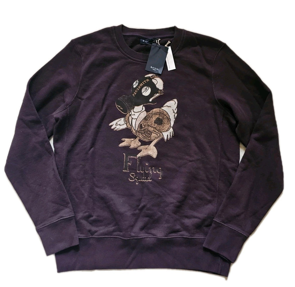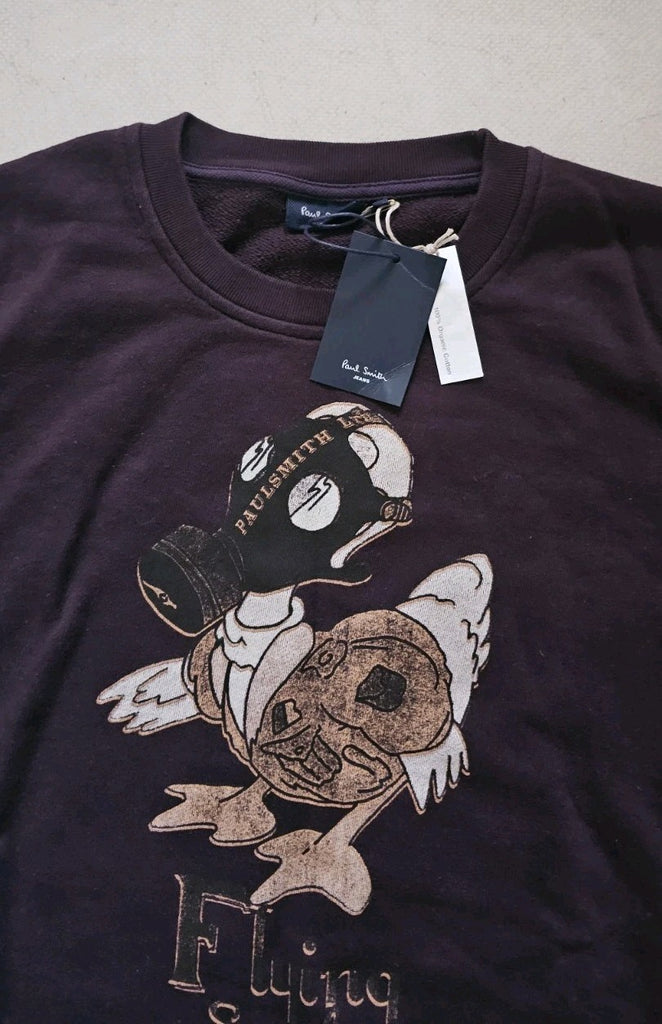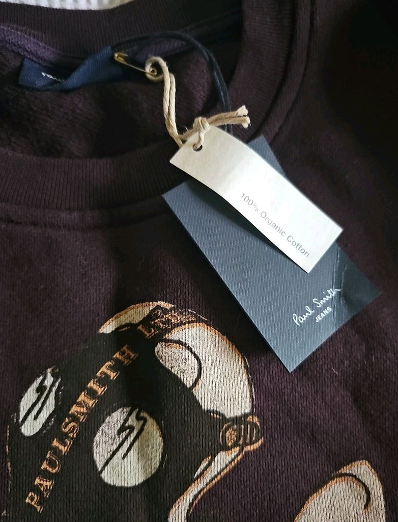 GREAT OPPORTUNITY TO OWN A BRAND NEW PAUL SMITH SWEATSHIRT IN MAHOGANY BROWN JERSEY COTTON WITH THE ICONIC FLYING SQUAD GRAPHIC PRINT ON THE FRONT. THE RRP ON THIS ITEM IS A FRANKLY RIDICULOUS £165 SO GRAB A SERIOUS BARGAIN!