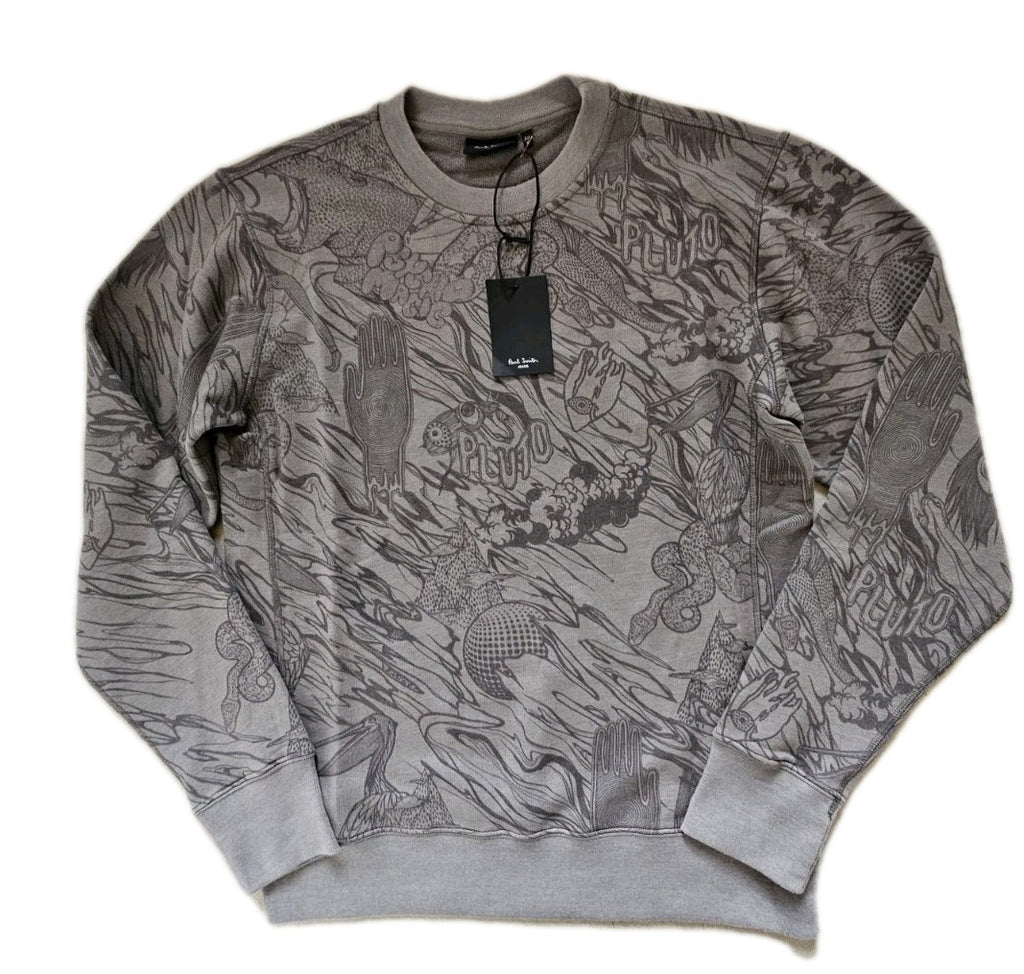 PAUL SMITH Sweatshirt Mens M Psycho Magic Marl Grey Stretch Cotton Blend