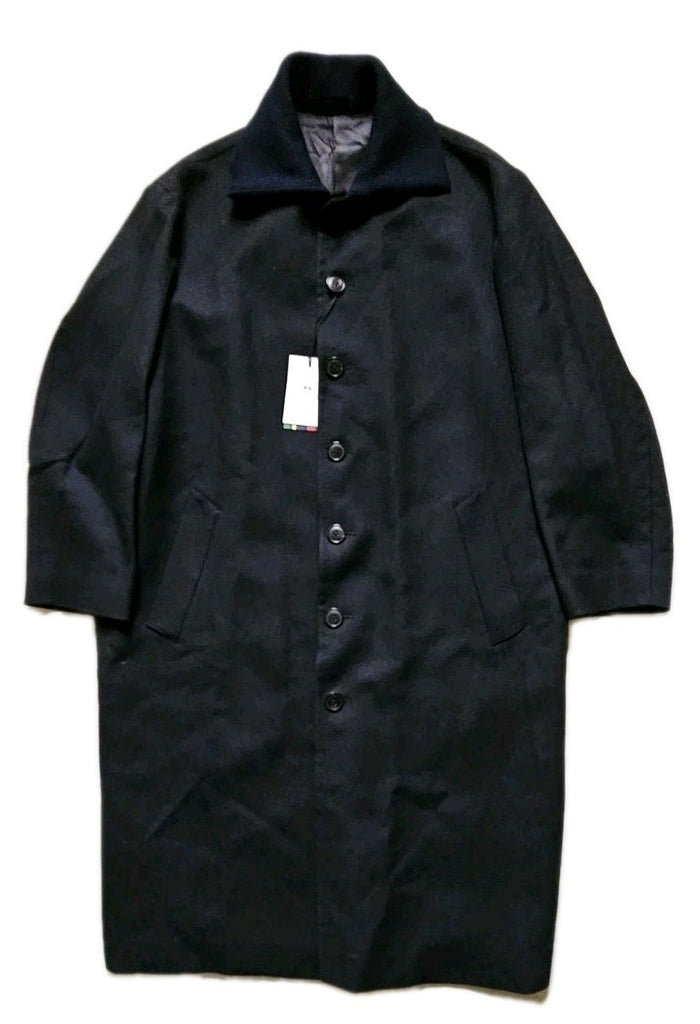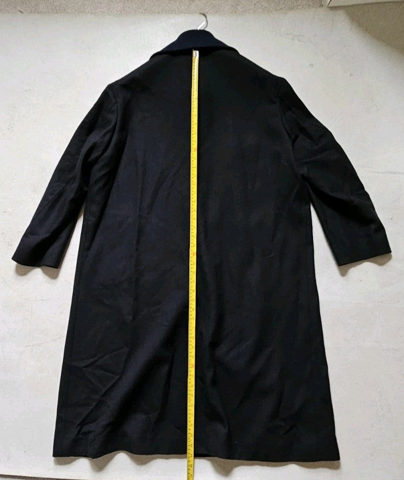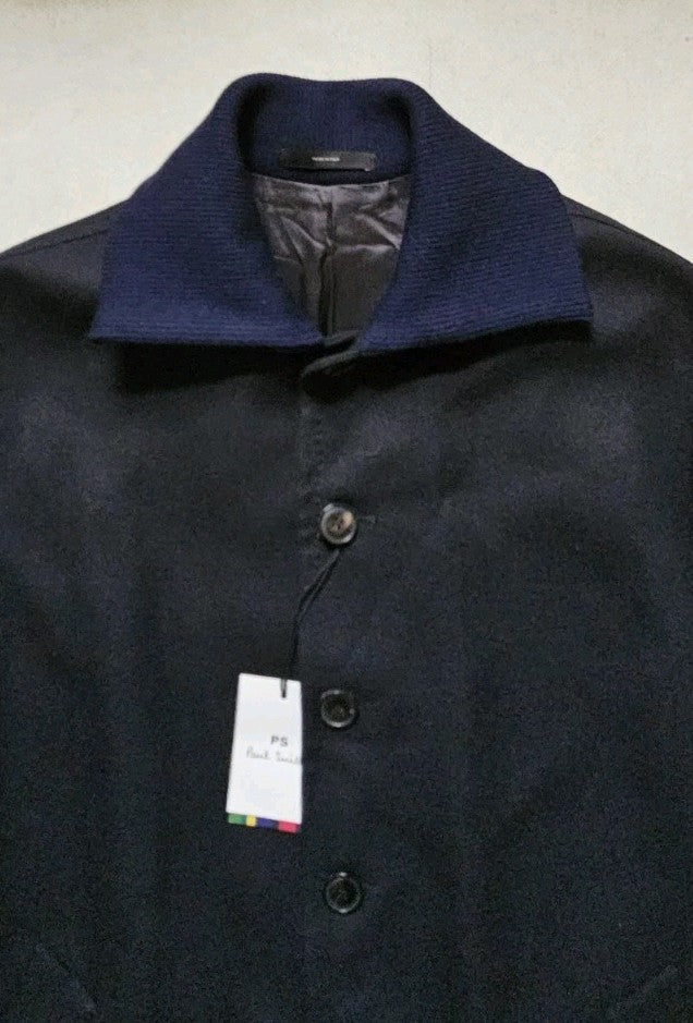 PAUL SMITH Trench Coat Mens UK 48 Long Navy Blue Wool Ribbed Collar Italy