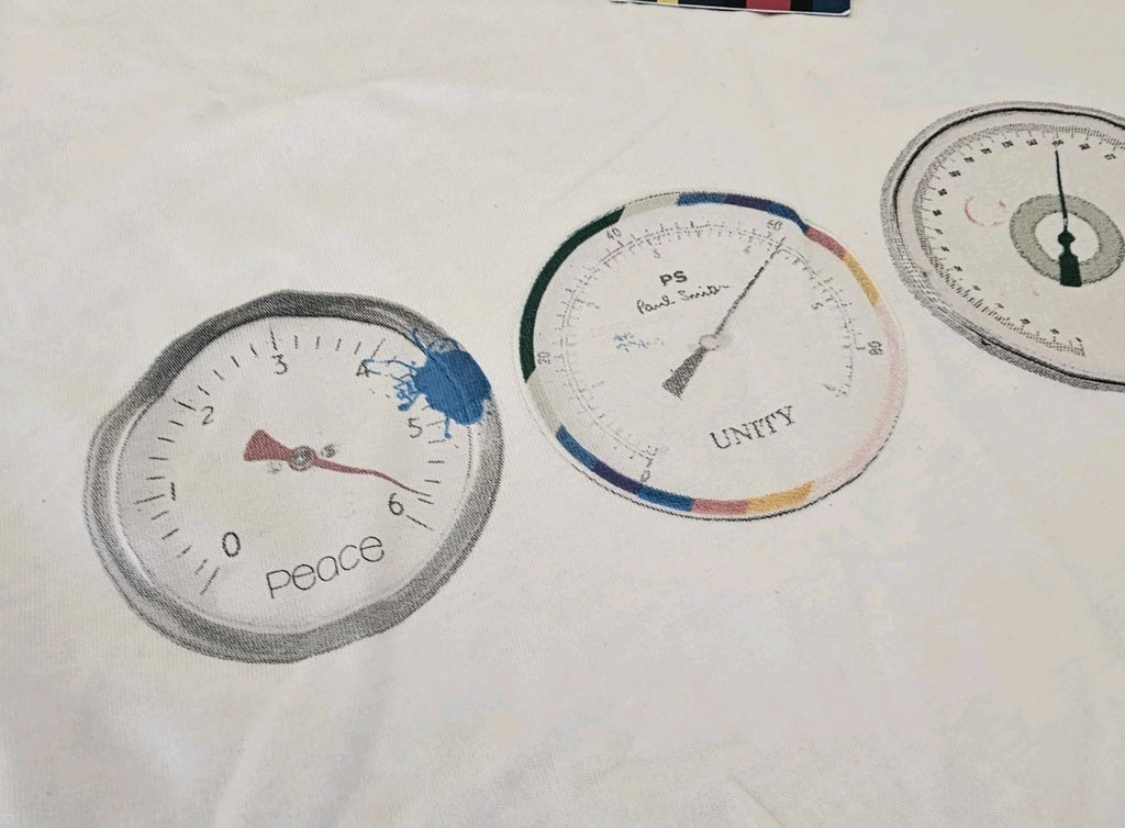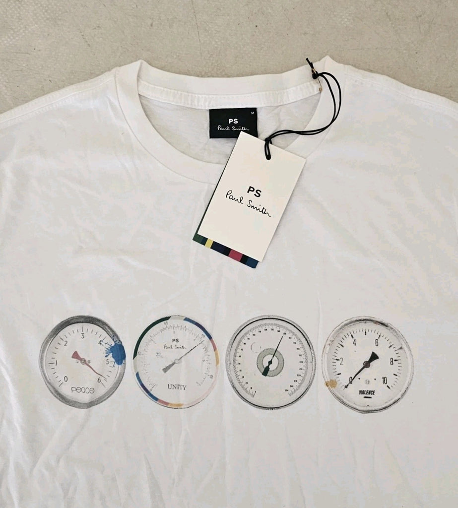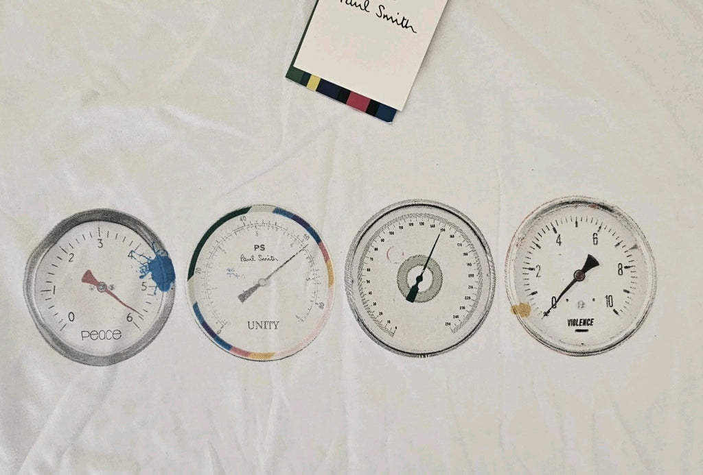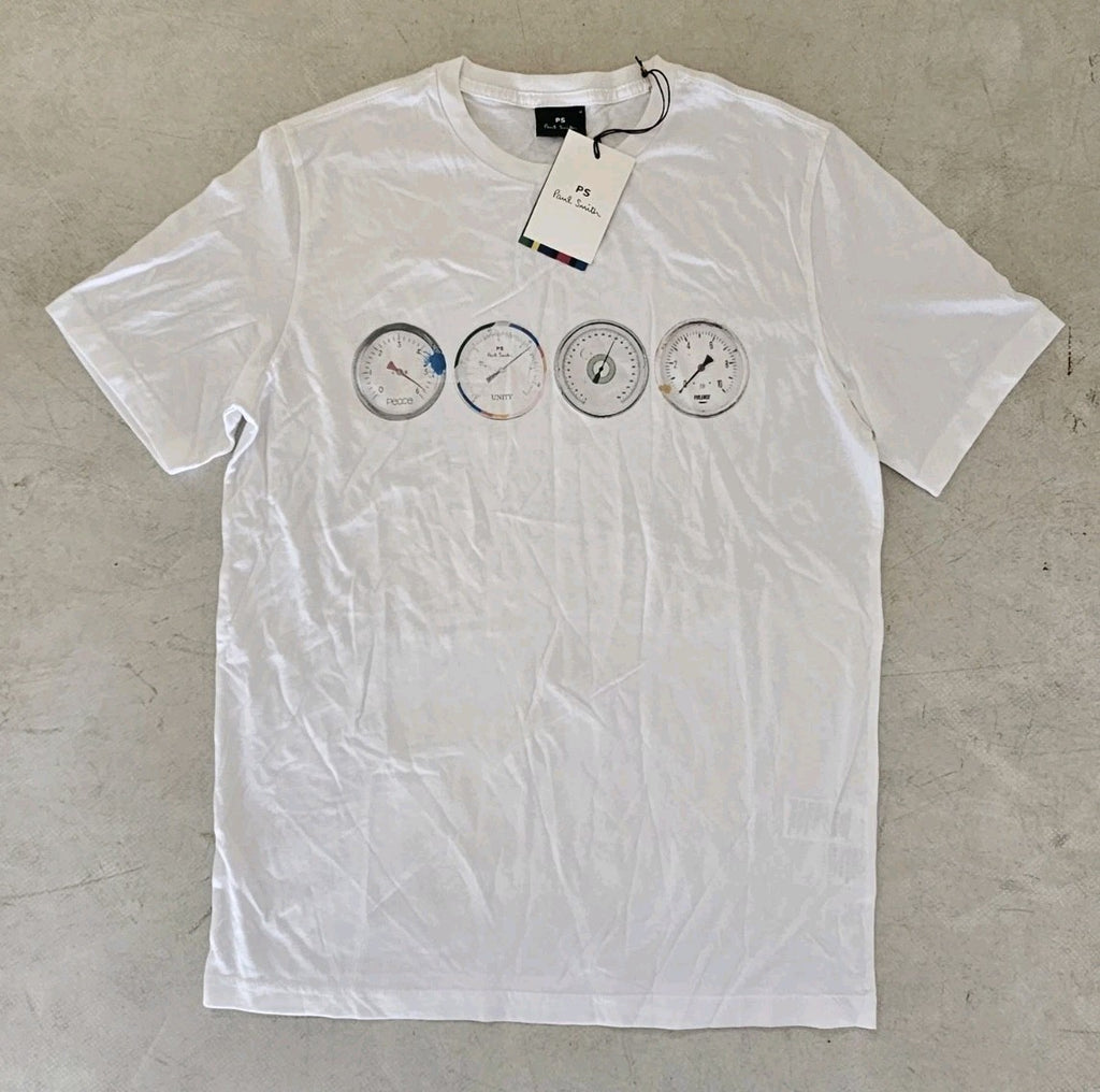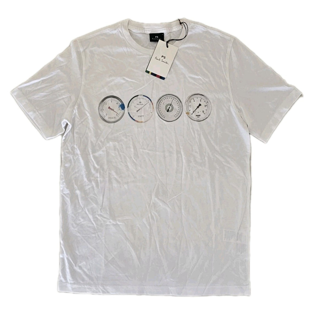PAUL SMITH Tshirt T Shirt Mens M Reg Fit Zeitgeist Dials White Organic Cotton