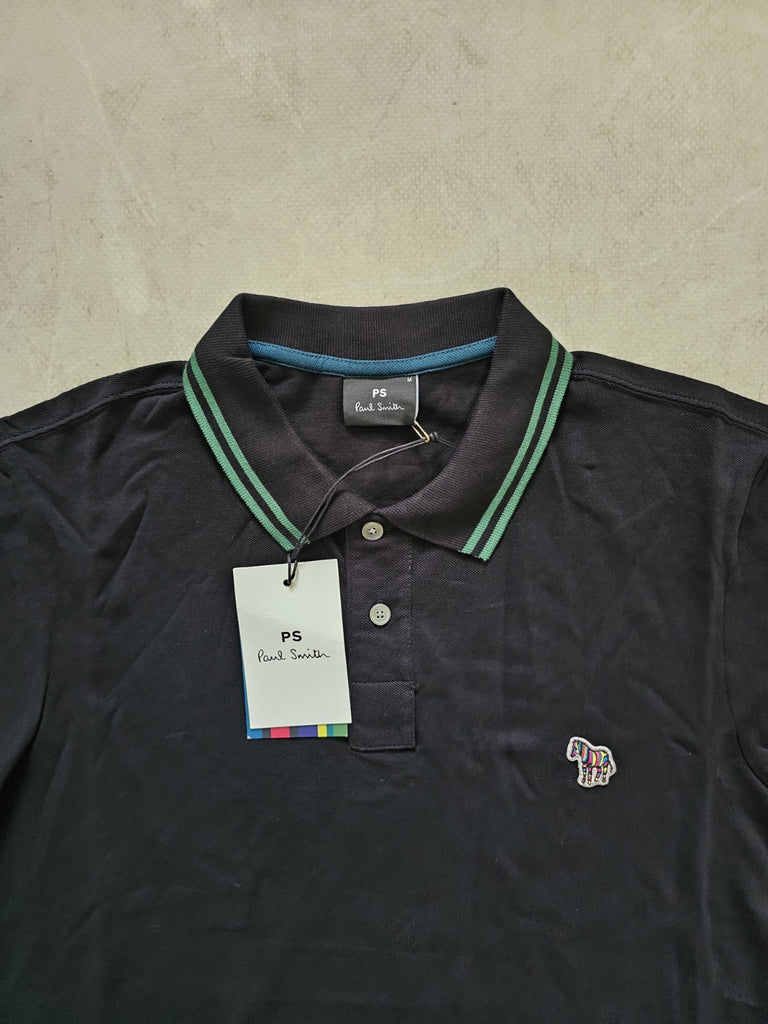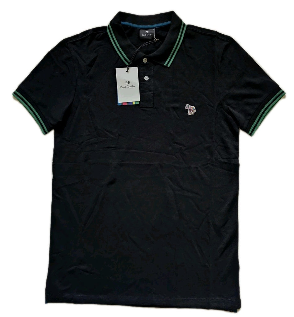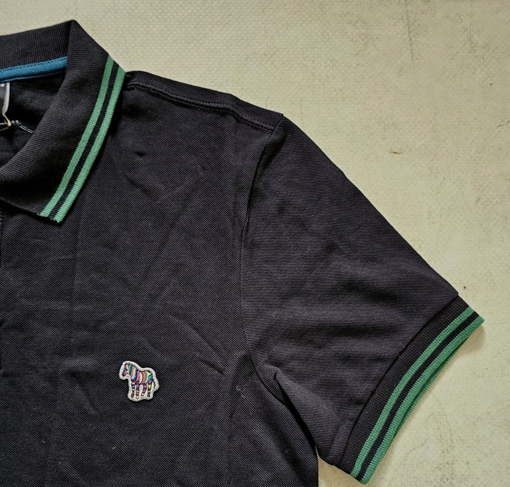 PAUL SMITH Zebra Polo Shirt Mens M Reg Fit Black Cotton Green Tip