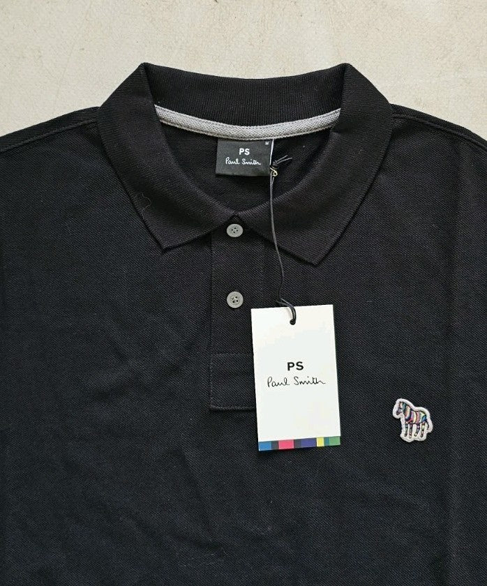 PAUL SMITH Zebra Polo Shirt Mens M Reg Fit Black Organic Cotton
