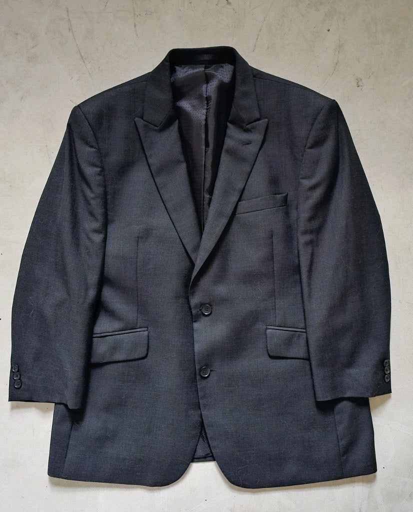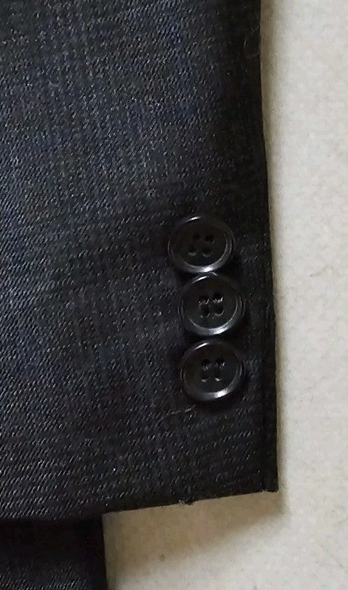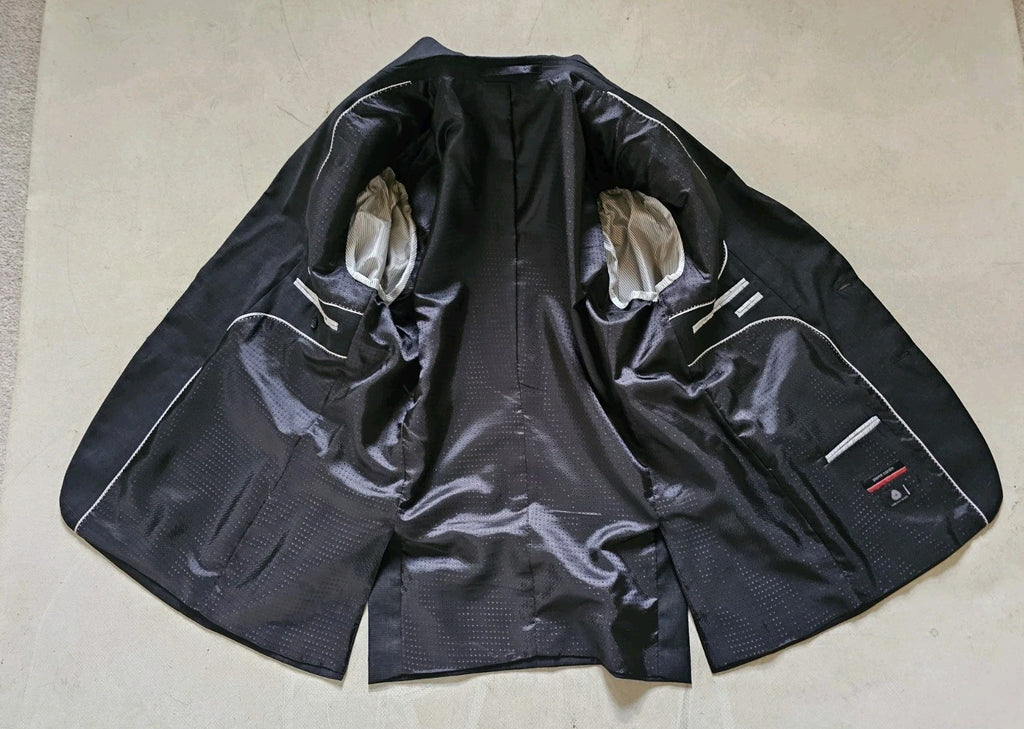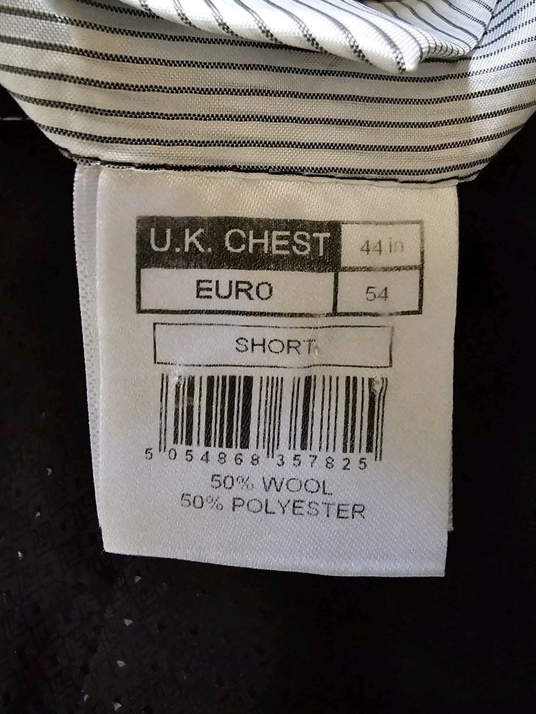 THE SUIT IS A 44 S, BUT I ALWAYS MEASURE SUITS UP MYSELF TO GIVE OUR CLIENTS EXACT AND TRUE SIZING. PLEASE COMPARE THE MEASUREMENTS BELOW WITH YOUR OWN SUIT TO ENSURE A GOOD FIT. WE ACCEPT ALL RETURNS BUT IT'S A LOT EASIER TO GET IT RIGHT FIRST TIME!