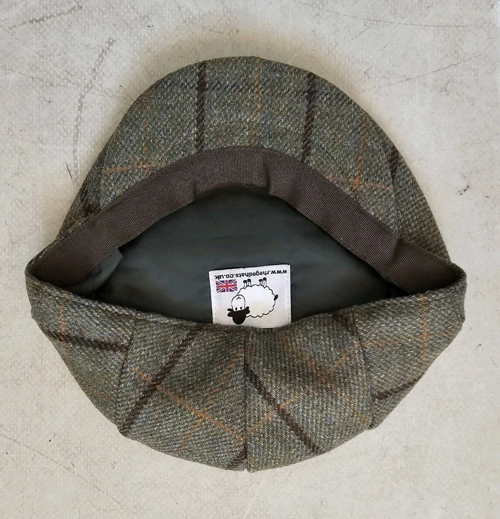 RHEGED Flat Cap Size L Country Check Wool Teflon Coated Handmade In The UK