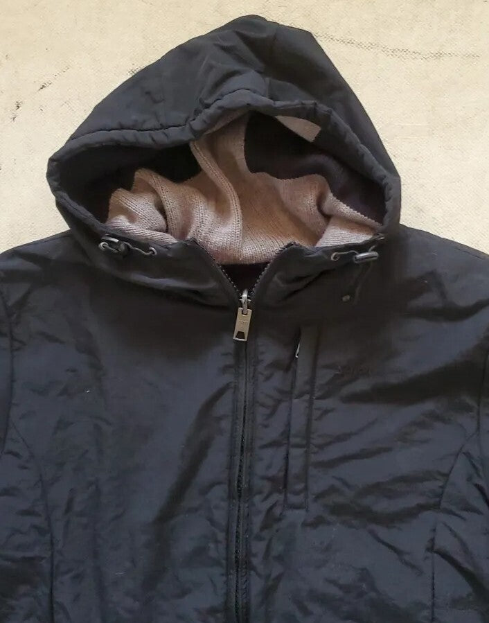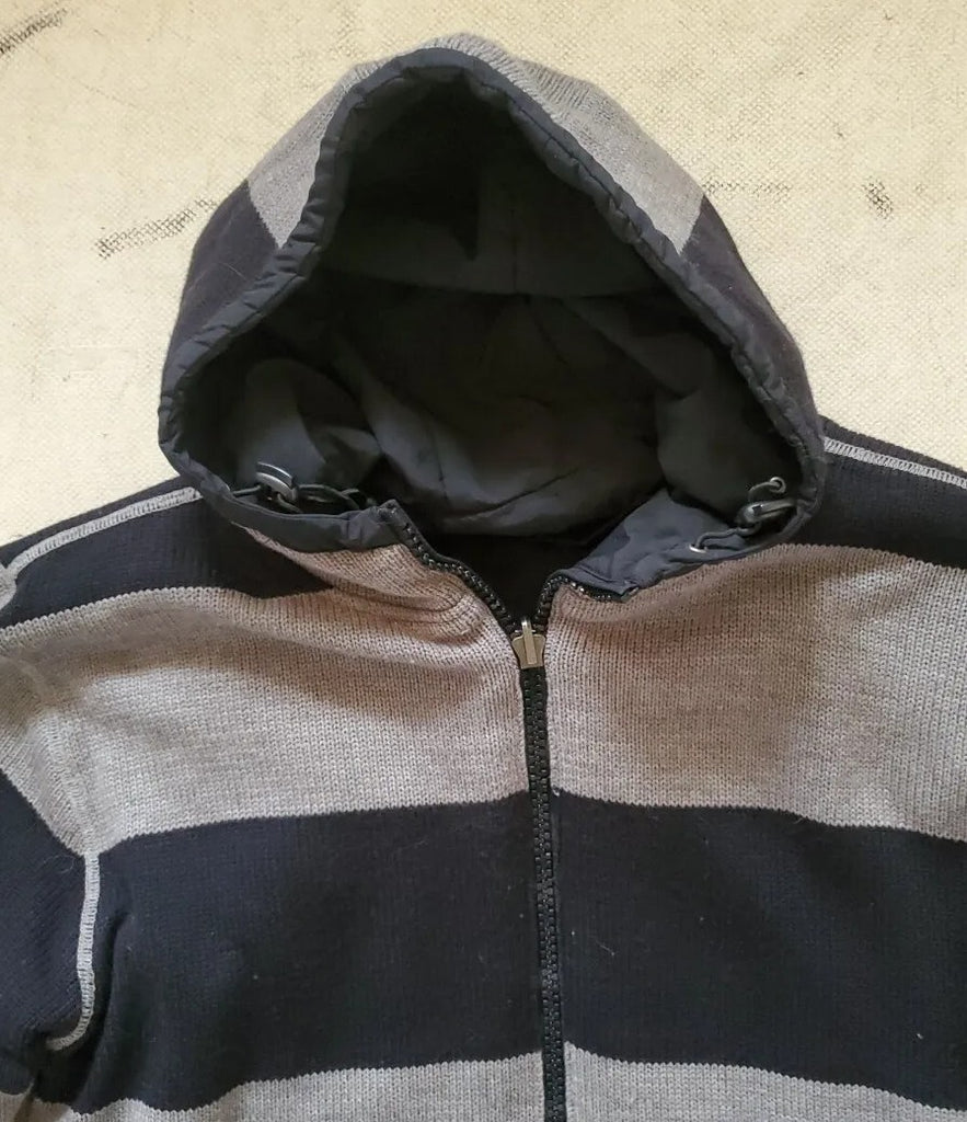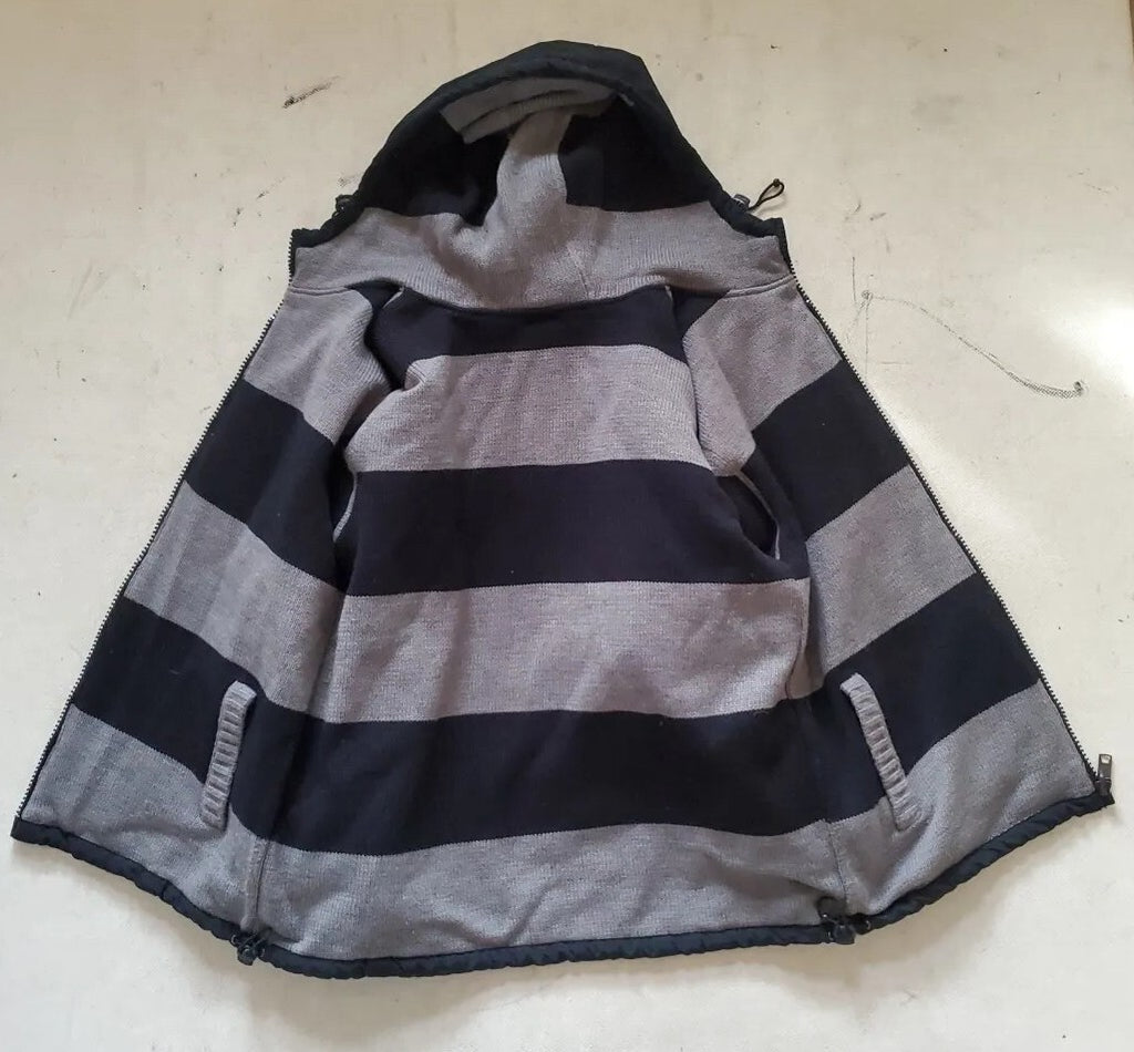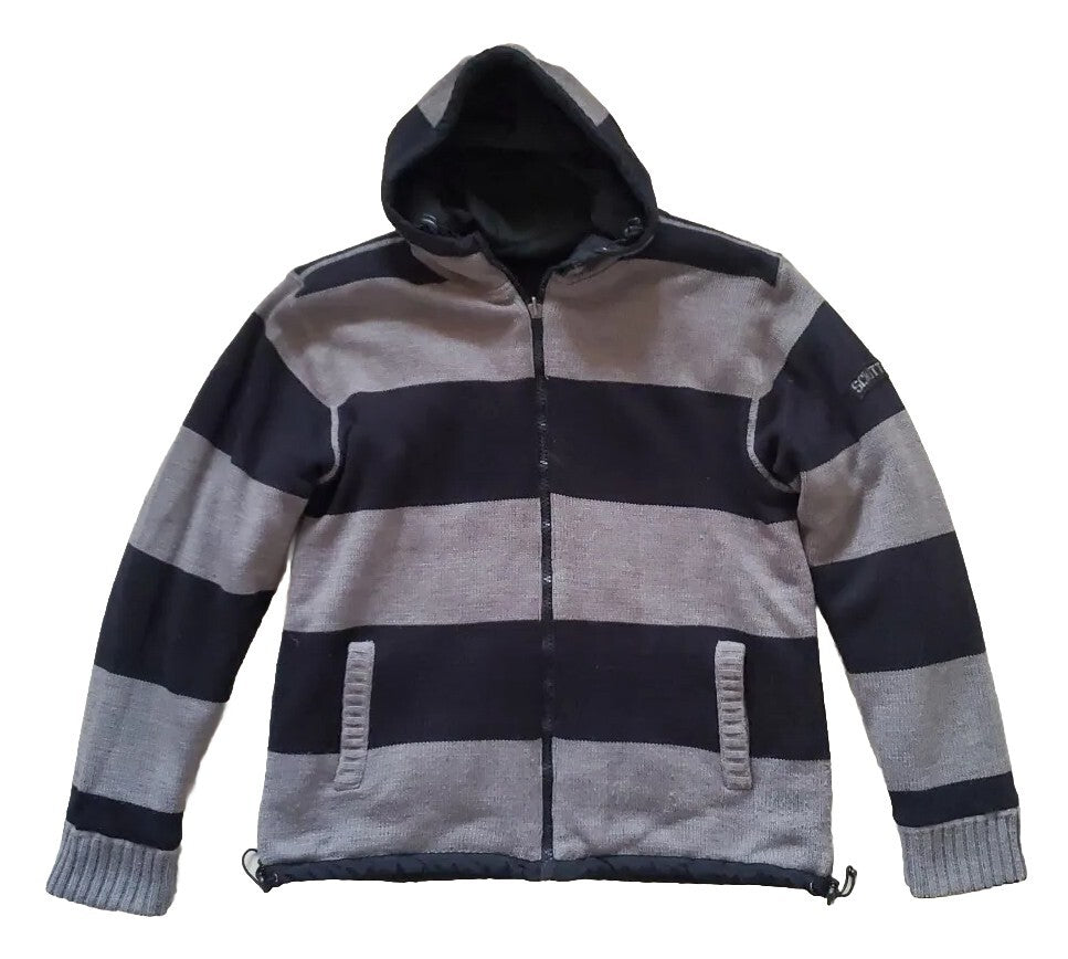 SCHOTT Jacket Coat Men XL Reversible Black Grey Waterproof and Stripe Knit Sides