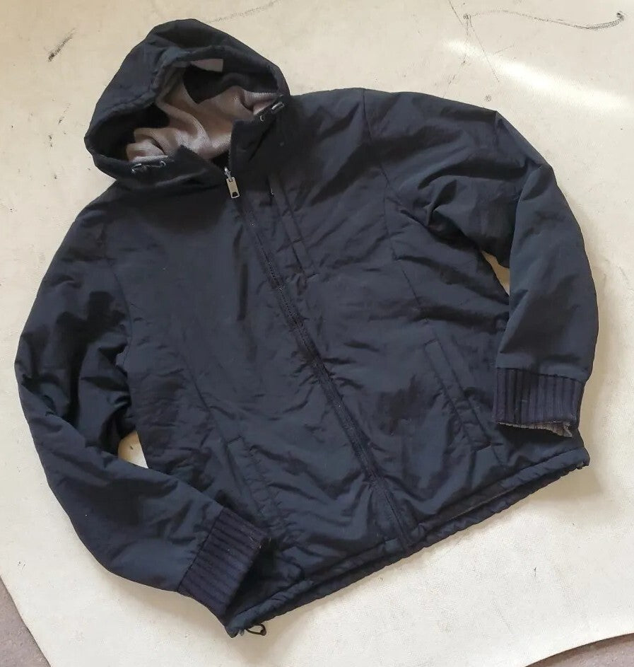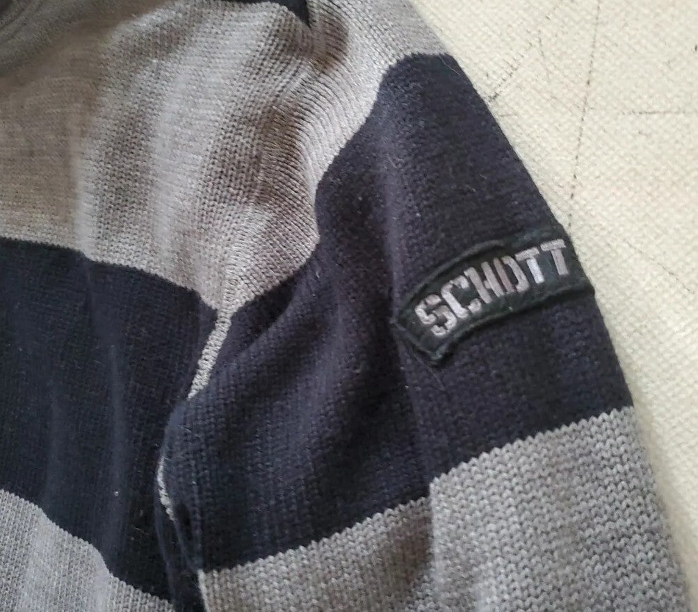 FANTASTIC OPPORTUNITY TO OWN AN AUTHENTIC SCHOTT NYC REVERSIBLE BOMBER JACKET. THE WATERPROOF, HOODED JACKET COMES IN BLACK ON ONE SIDE AND GREY & BLACK STRIPED KNIT ON THE OTHER, IN A SIZE XL. THE RRP ON THIS ITEM IS £215 SO GRAB A BARGAIN!