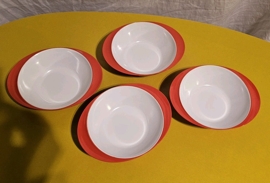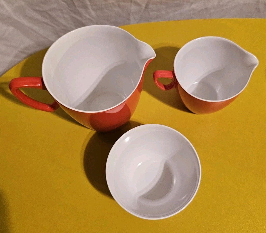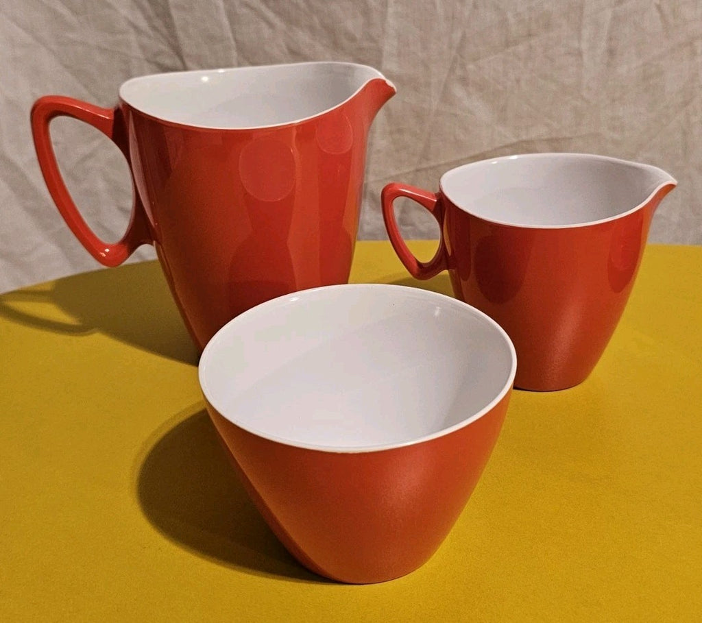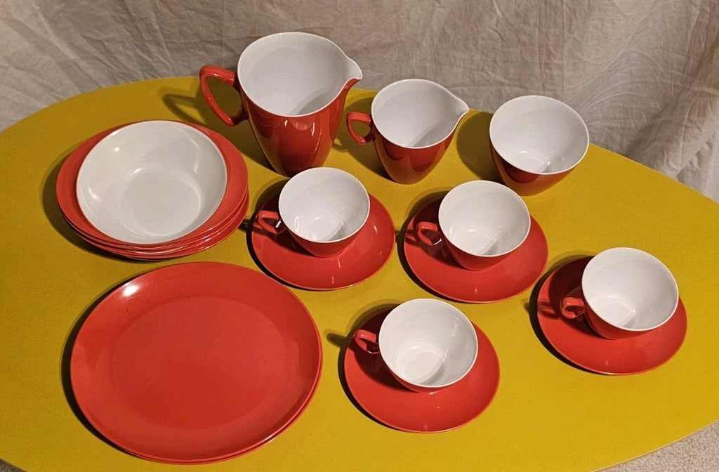 This is the legendary Gaydon Melmex 4 person travel dinner set from the 1960's in the best and rarest colour combo - red and white. If you're not familiar with Gaydon Melmex look them up. They made the toughest travel sets in history - this particular one is so good it could have been made this morning!
