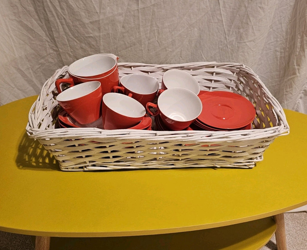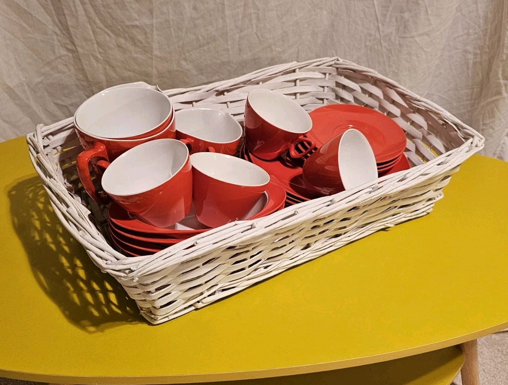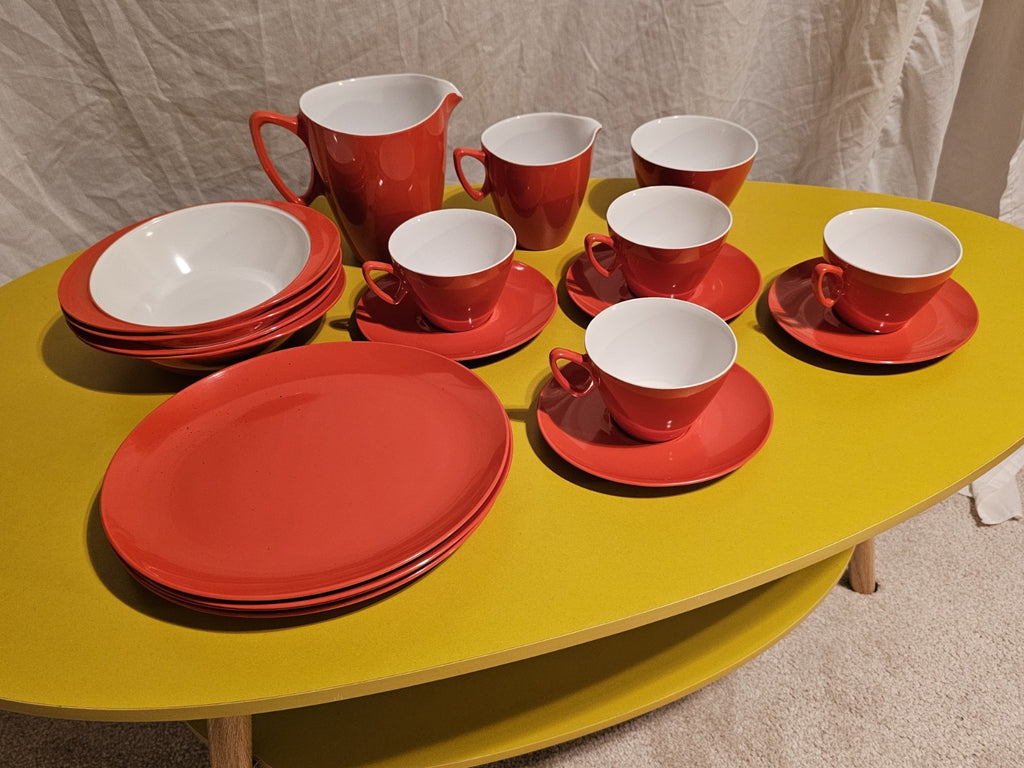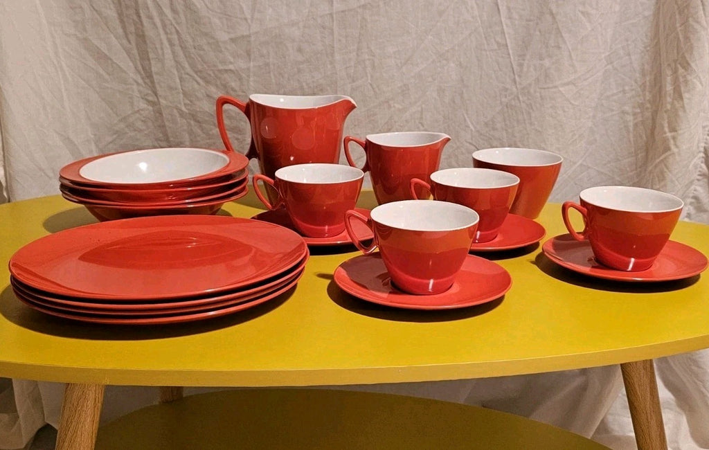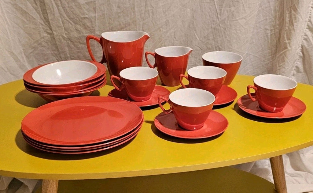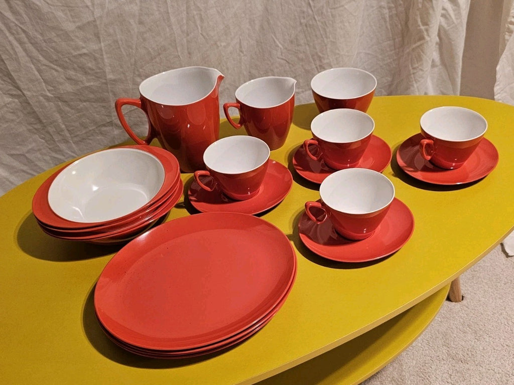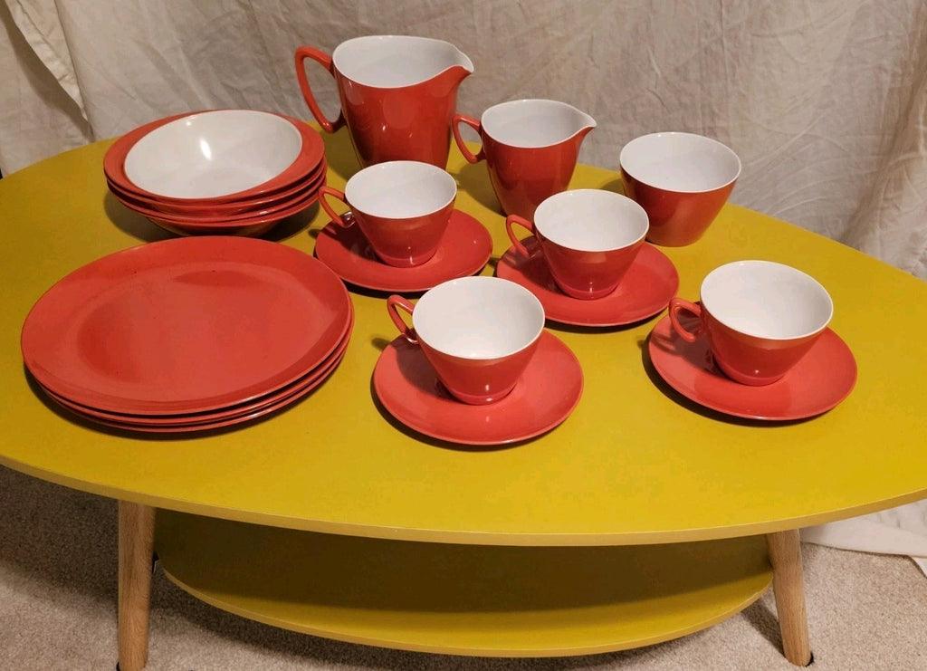 There are loads of the green and blue variants available online but it's not often you'll see a compete set in the stunning coral red. Prices are trending from £90 - 140 for one similar to this so grab a serious bargain!