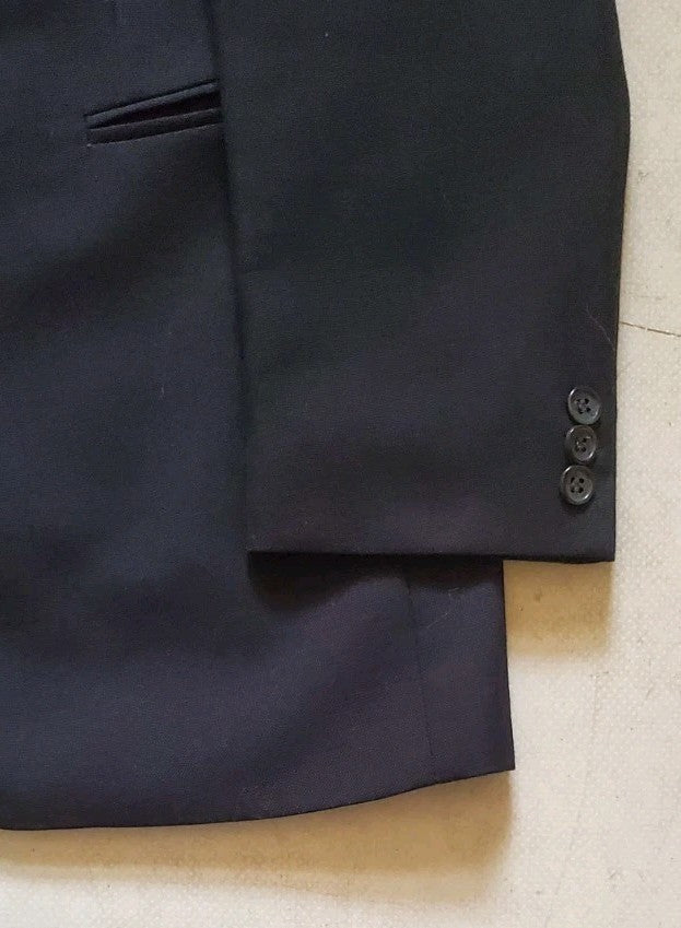 THIS IS THE BEST PART! THE SUIT IS IN NEAR MINT CONDITION. I SUSPECT IT WAS ONLY WORN ON A HANDFUL OF OCCASIONS, THEN DRY CLEANED AND STORED IN A WARDROBE....ITS CLOSE TO MINT WITH NO SIGNS OF WEAR, NO LOOSE STITCHING, NO MISSING BUTTONS. I'D GIVE IT A 9/10. NOT QUITE BRAND NEW BUT NOT FAR OFF!