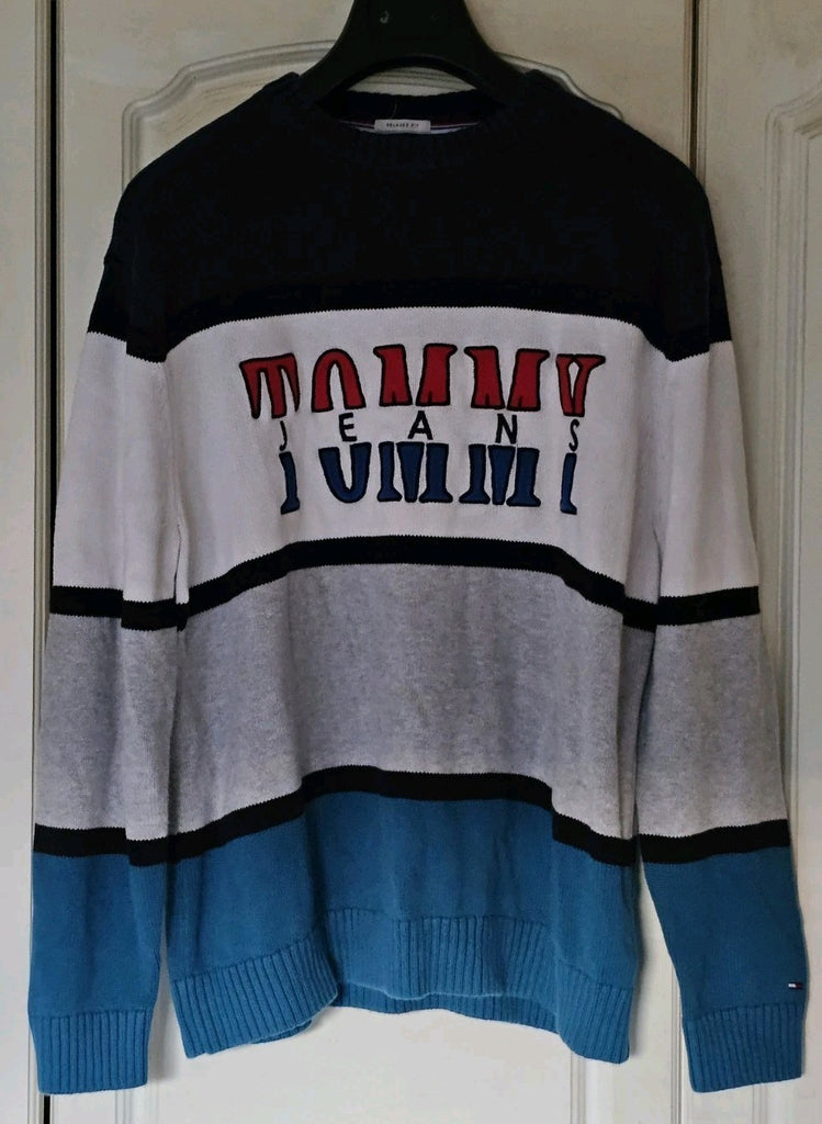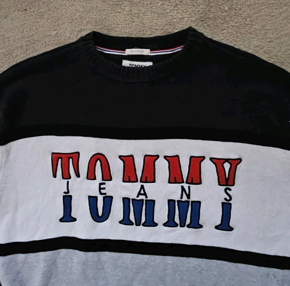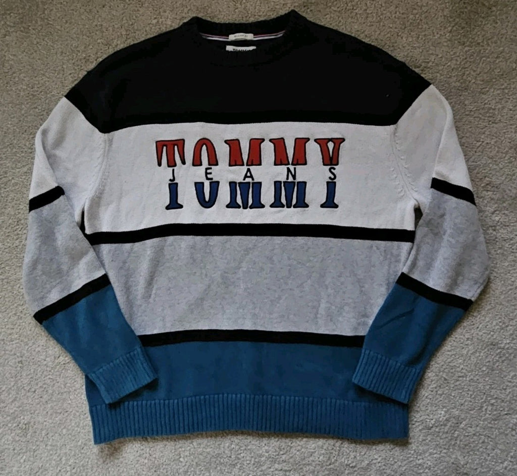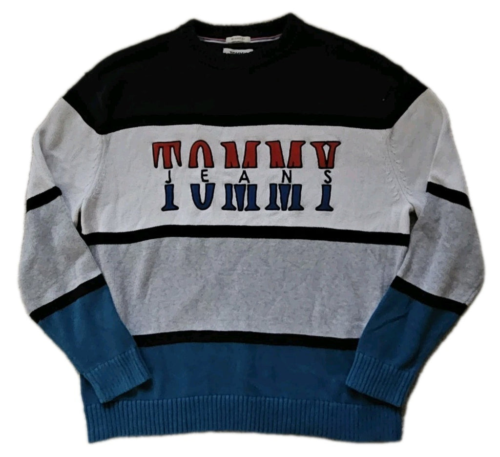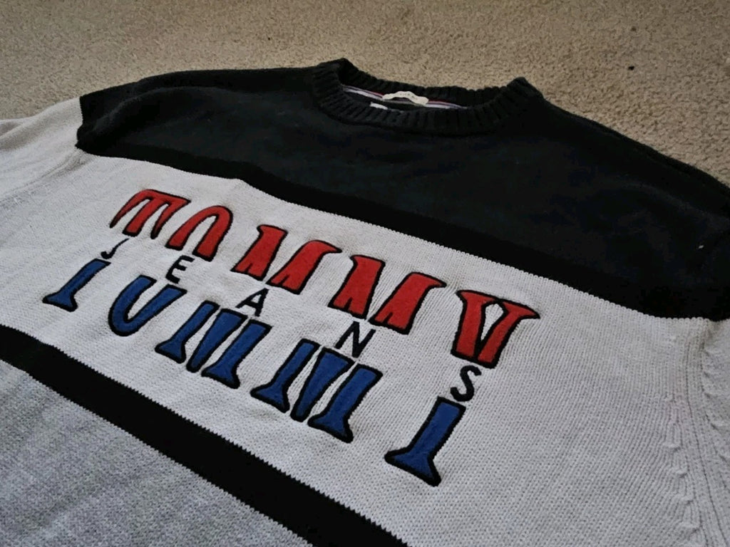 GREAT OPPORTUNITY TO OWN A VINTAGE TOMMY HILFIGER GENTS JUMPER IN EXCELLENT CONDITION. THIS PARTICULAR JUMPER FEATURES A LARGE AND UNIQUE SPELLOUT LOGO ON THE CHEST. YOU'RE UNLIKELY TO FIND ANOTHER OF THESE, SO GRAB A REAL BARGAIN!